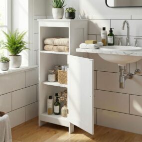 - Geschlossener Stauraum für Badartikel und Pflegeprodukte