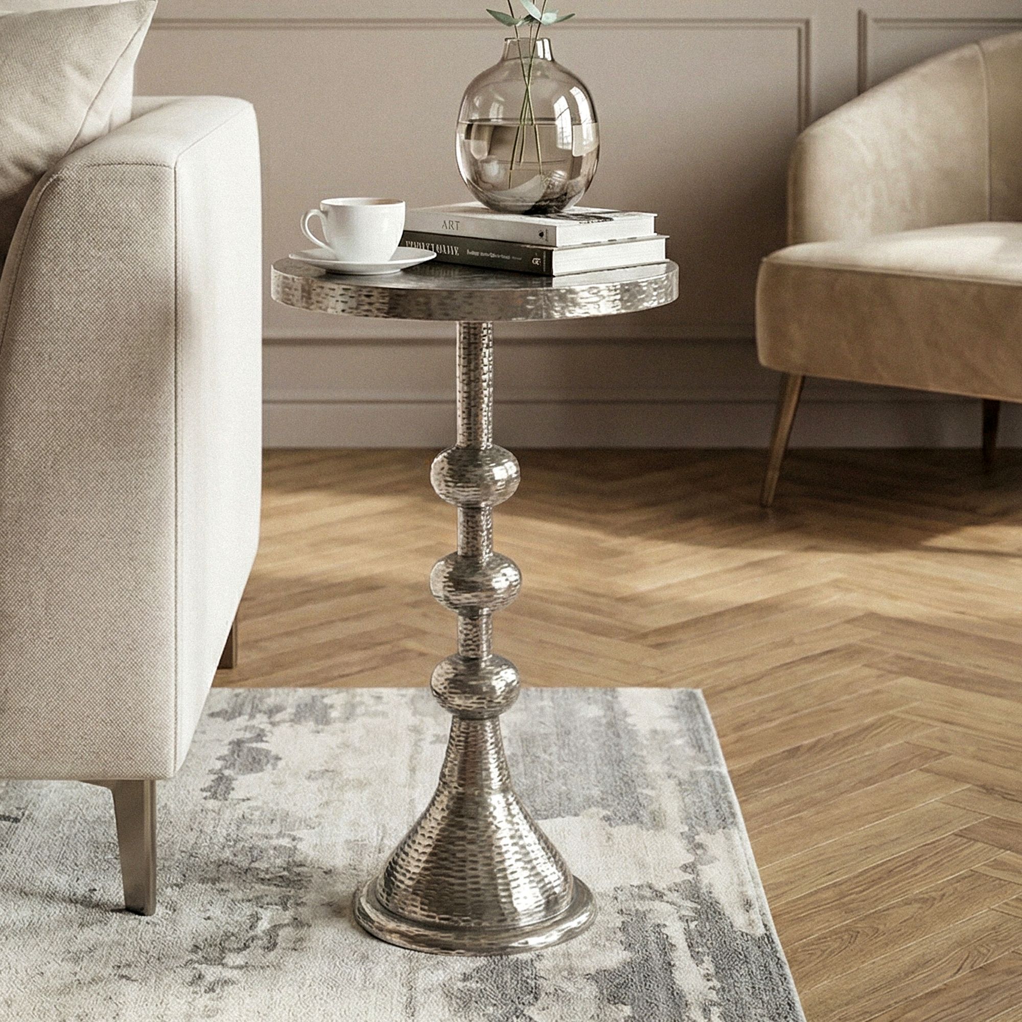 Beistelltisch Aluminium Silber 30cm Runder Anstelltisch Metall – Dekotisch Alu orientalisch – Wohnzimmertisch klein – Design Couchtisch Sofatisch Wohnzimmer Orient Handmade