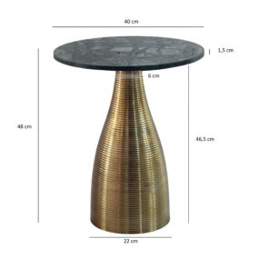 Beistelltisch Rund 40cm Gold mit Massiver Marmorplatte Grün – Wohnzimmertisch Naturstein Anstelltisch – Sofatisch Design Metall Couchtisch – Wohnzimmer Tisch Modern Handmade