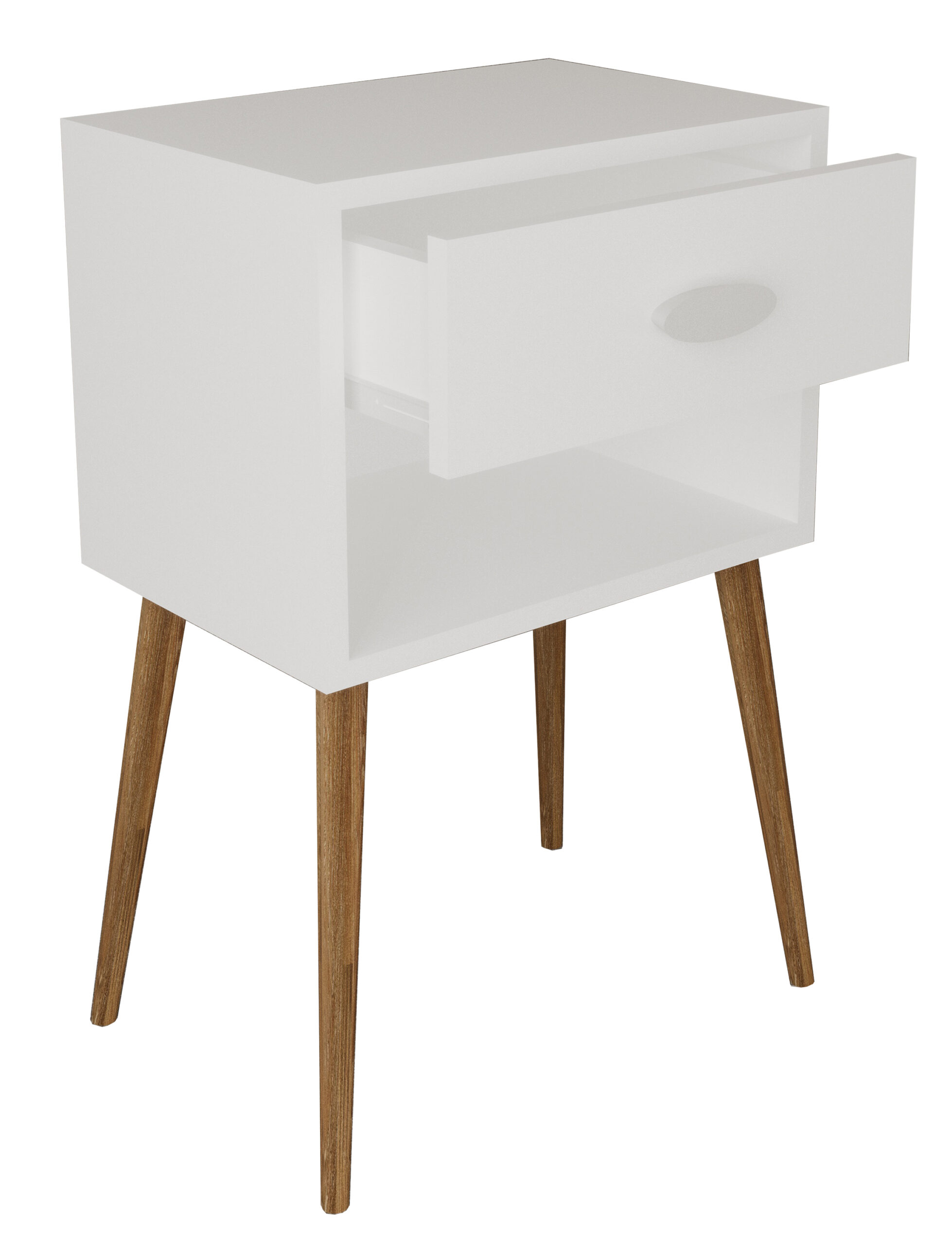 • Nachttisch mit leichtgängiger Schublade im Retro Design