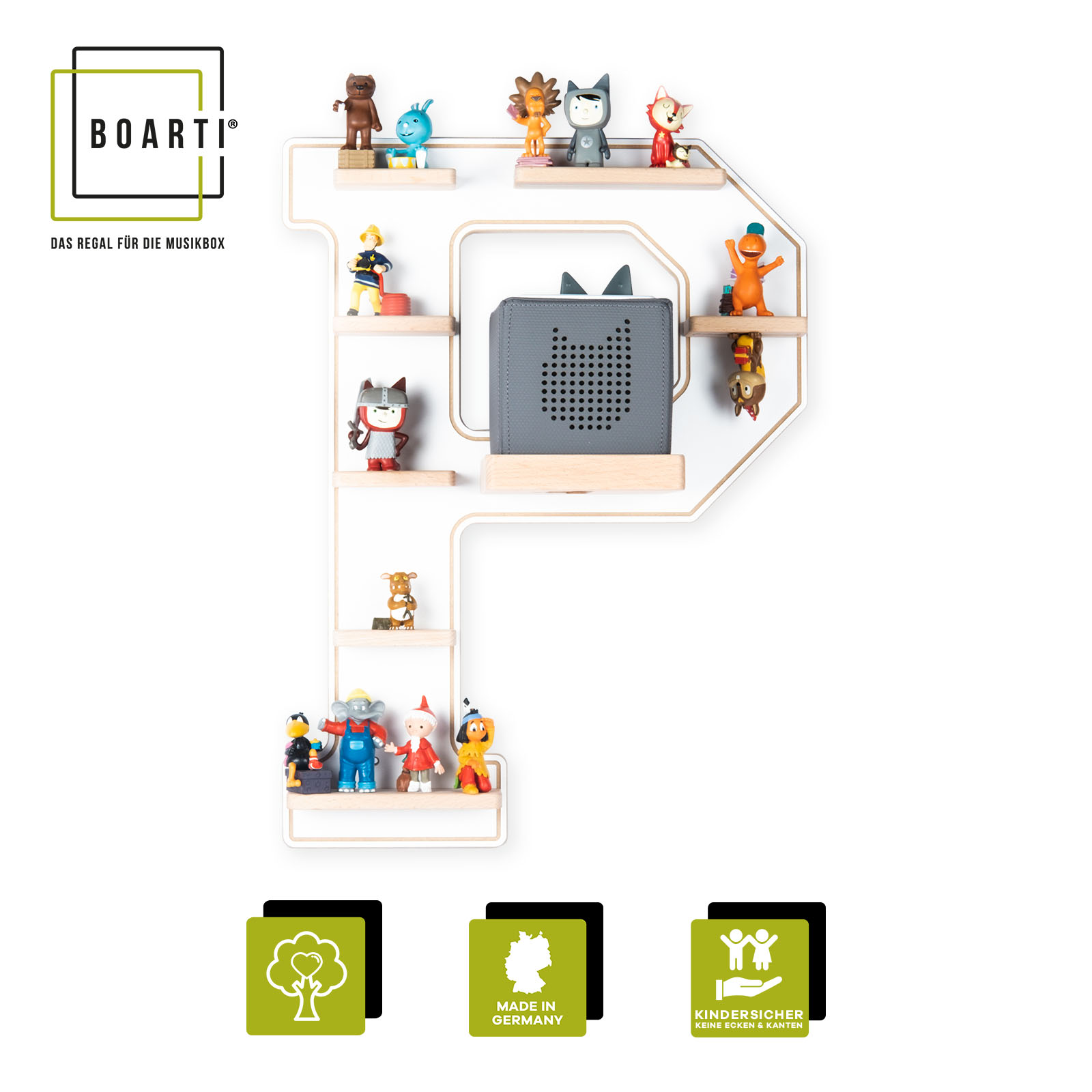 • 1 x Boarti Tonieregal – Buchstabe P, inklusive Beschreibung (Montageanleitung)
