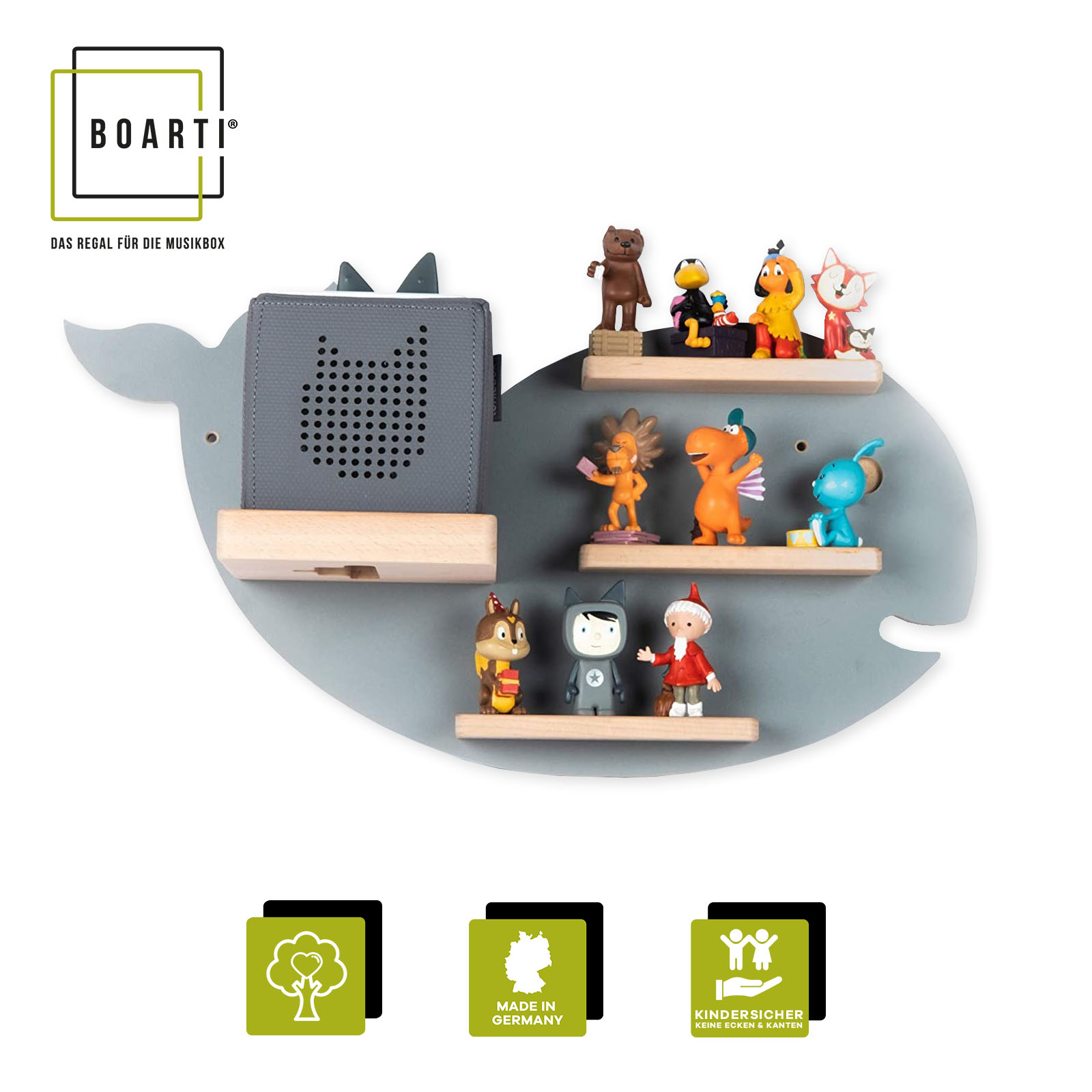 • 1 x Boarti Tonieregal – Wal, inklusive Beschreibung (Montageanleitung)