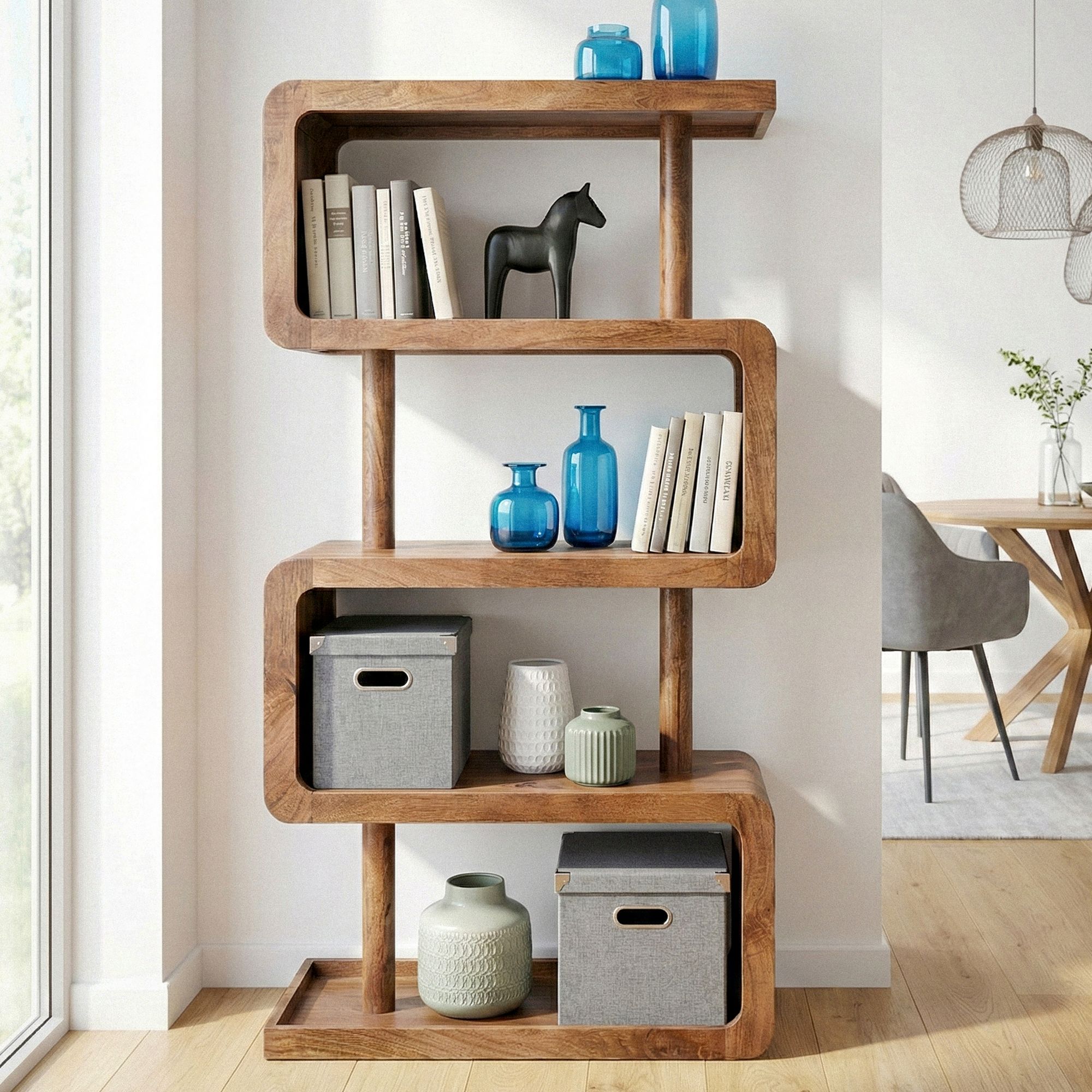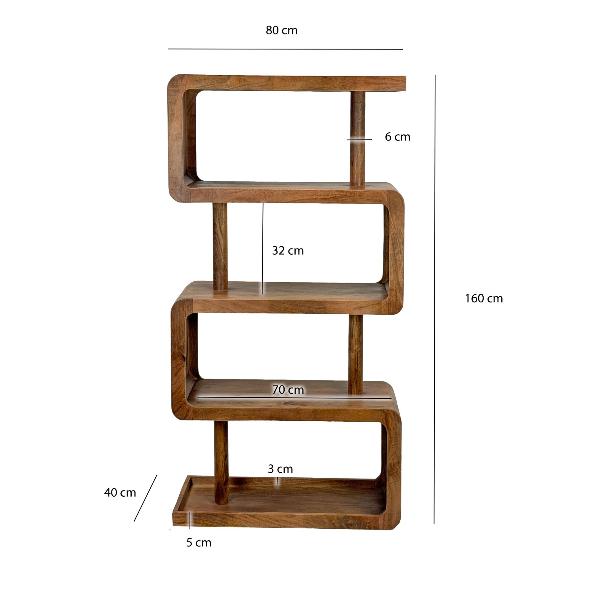 - Komplettes Holzregal: Mango Massivholz, mit Klarlack beschichtet