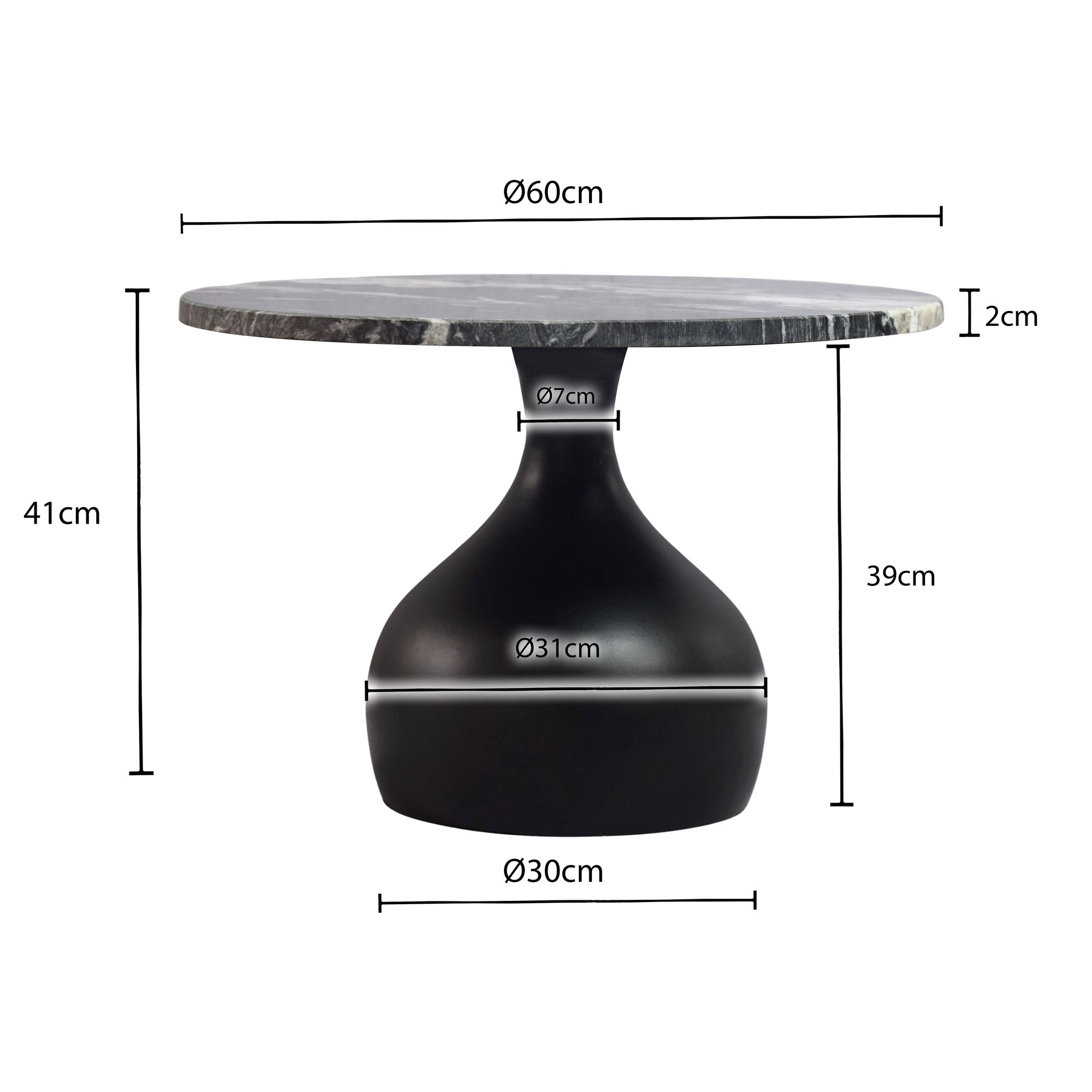 Couchtisch 60cm Aluminium mit schwarzer Marmor Tischplatte – Runder Wohnzimmertisch – Design Sofatisch – Moderner Loungetisch – Edler Beistelltisch Wohnzimmer Handmade