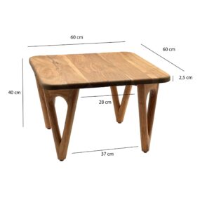 Couchtisch Akazie Massivholz 60cm – Wohnzimmertisch Quadratisch – Sofatisch Holz Modern – Design Loungetisch mit abgerundeten Ecken Landhaus Handmade