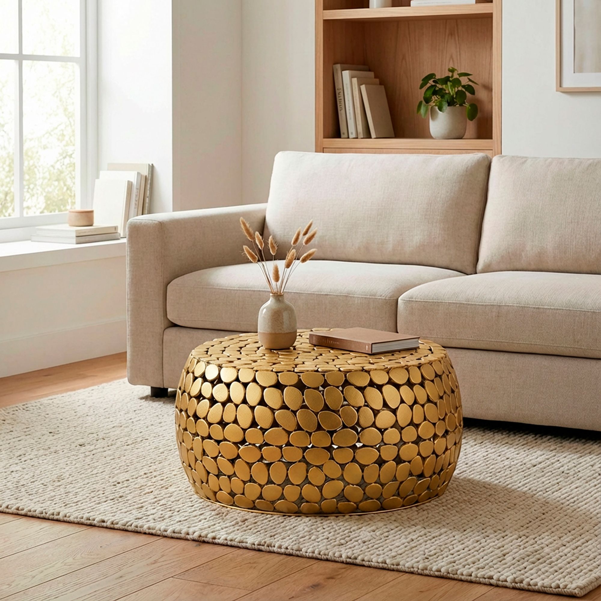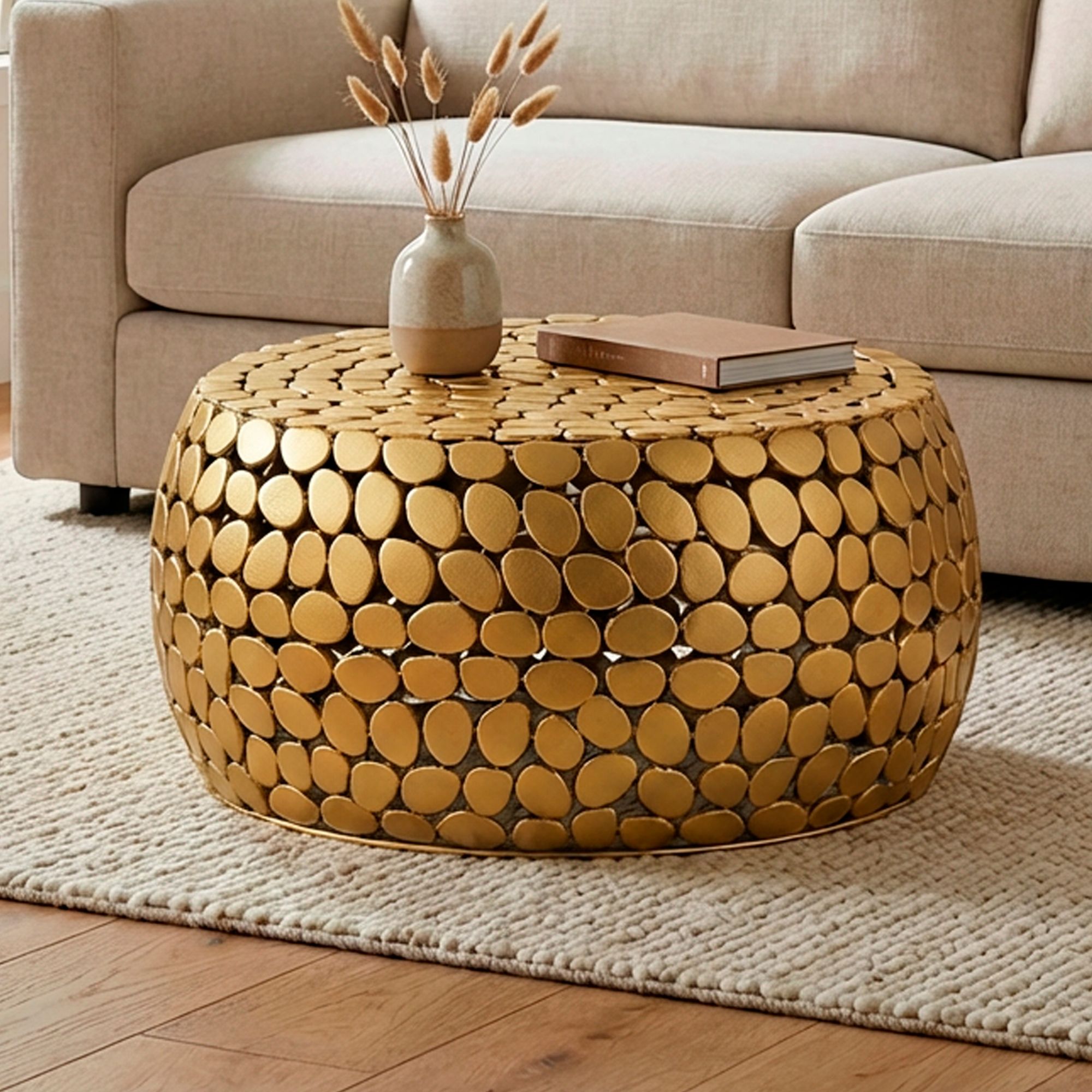 Couchtisch Aluminium gold rund 66×32 cm – Design Sofatisch Wohnzimmer – Moderner Wohnzimmertisch Metall – Runder Loungetisch – Alu Beistelltisch Handmade