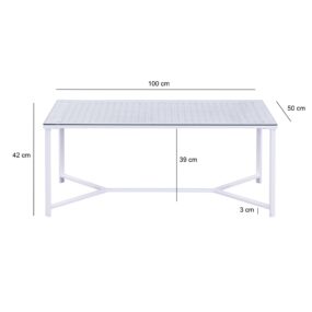 Couchtisch Glas Metall Weiß 100 cm, Rechteckiger Wohnzimmertisch Modern mit Glasplatte & Metallgestell, Sofatisch im Industrial Design für Wohnzimmer