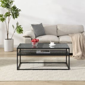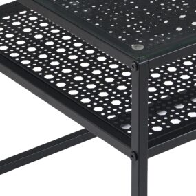 Couchtisch Glas Rechteckig 100 cm Schwarz, Moderner Wohnzimmertisch mit Metallgestell & Ablage im Industrial Design, Sofatisch mit Glasplatte