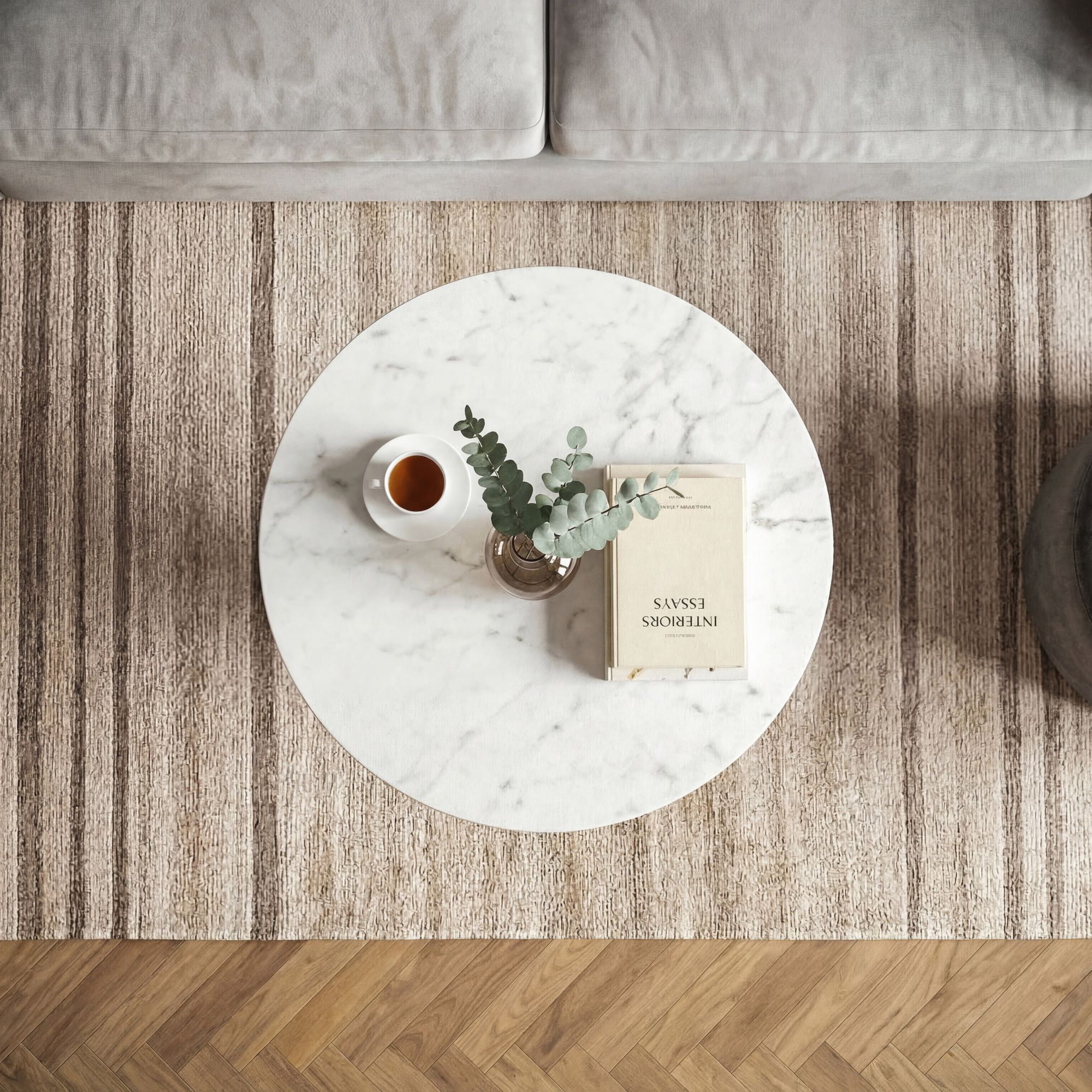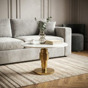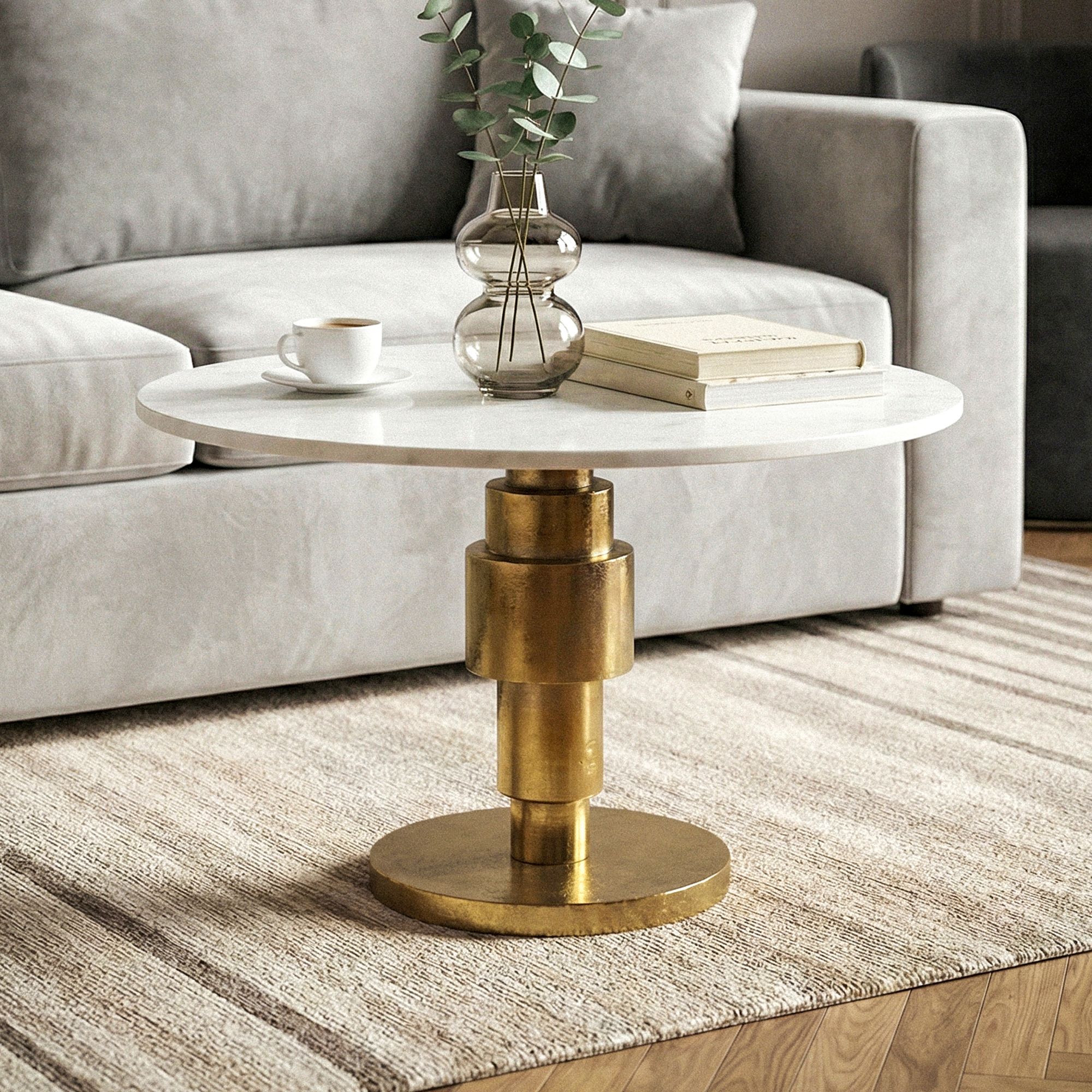 Couchtisch Gold 60cm mit weißer Marmor Tischplatte – Wohnzimmertisch rund – Sofatisch Alu modern – Beistelltisch Aluminium – Design Tisch Wohnzimmer Metallgestell Handmade