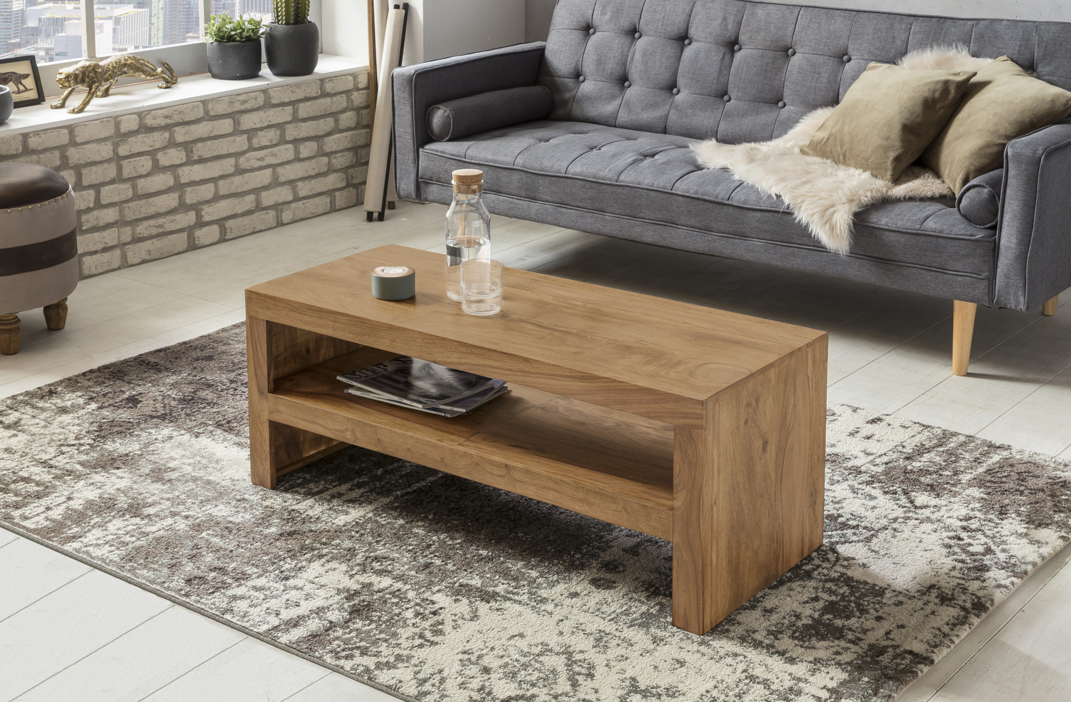 Couchtisch MUMBAI Massiv-Holz Durban Akazie 110 cm breit Wohnzimmer-Tisch Design braun Landhaus-Stil Beistelltisch