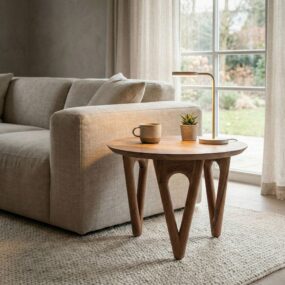 Couchtisch Rund 60 cm Wohnzimmertisch Akazie Massivholz – Sofatisch Holz – Loungetisch Modern – Massiver Design Tisch – Beistelltisch Landhaus Handmade
