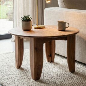 Couchtisch Rund 60cm Wohnzimmertisch Akazie Massivholz – Sofatisch Holz Modern – Design Loungetisch Beistelltisch Wohnzimmer Handmade