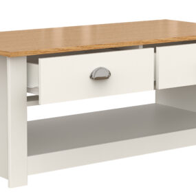 • Holz Sofatisch im Retro Design mit 2 Schubladen