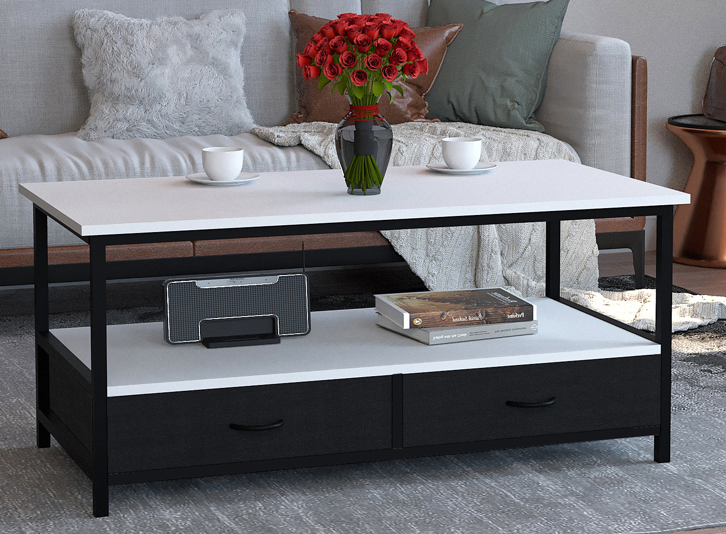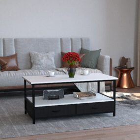 • Industrie Style Sofatisch aus Metall und Holzwerkstoff