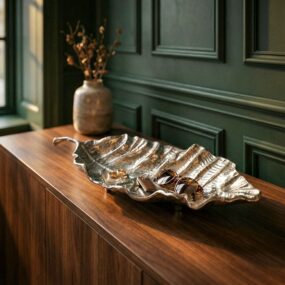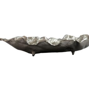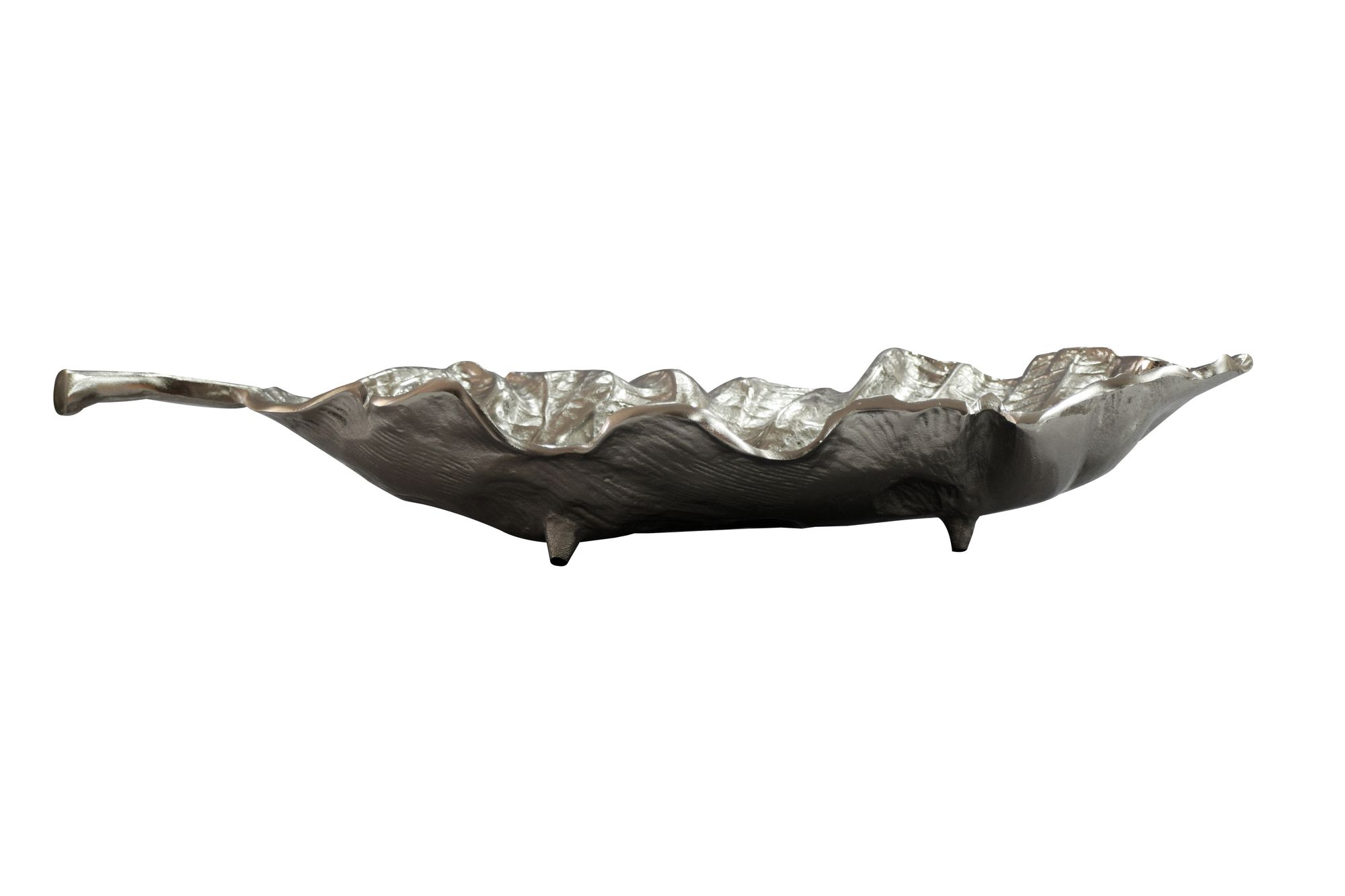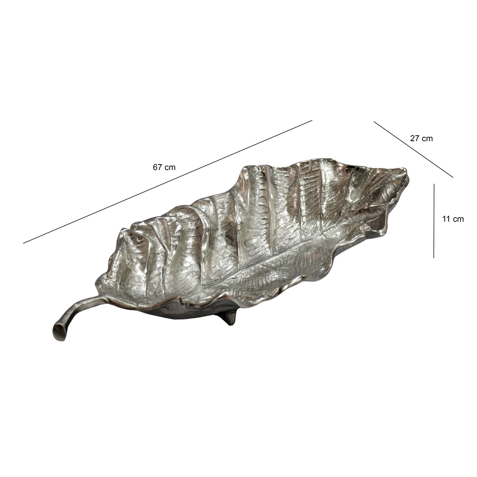 Dekoschale Blatt Aluminium Silber Schale 67cm – Design Tischdeko Metall Wohnzimmer – Alu Wohnaccessoire Modern – Metallschale Dekoration – Aluschale lang Handmade