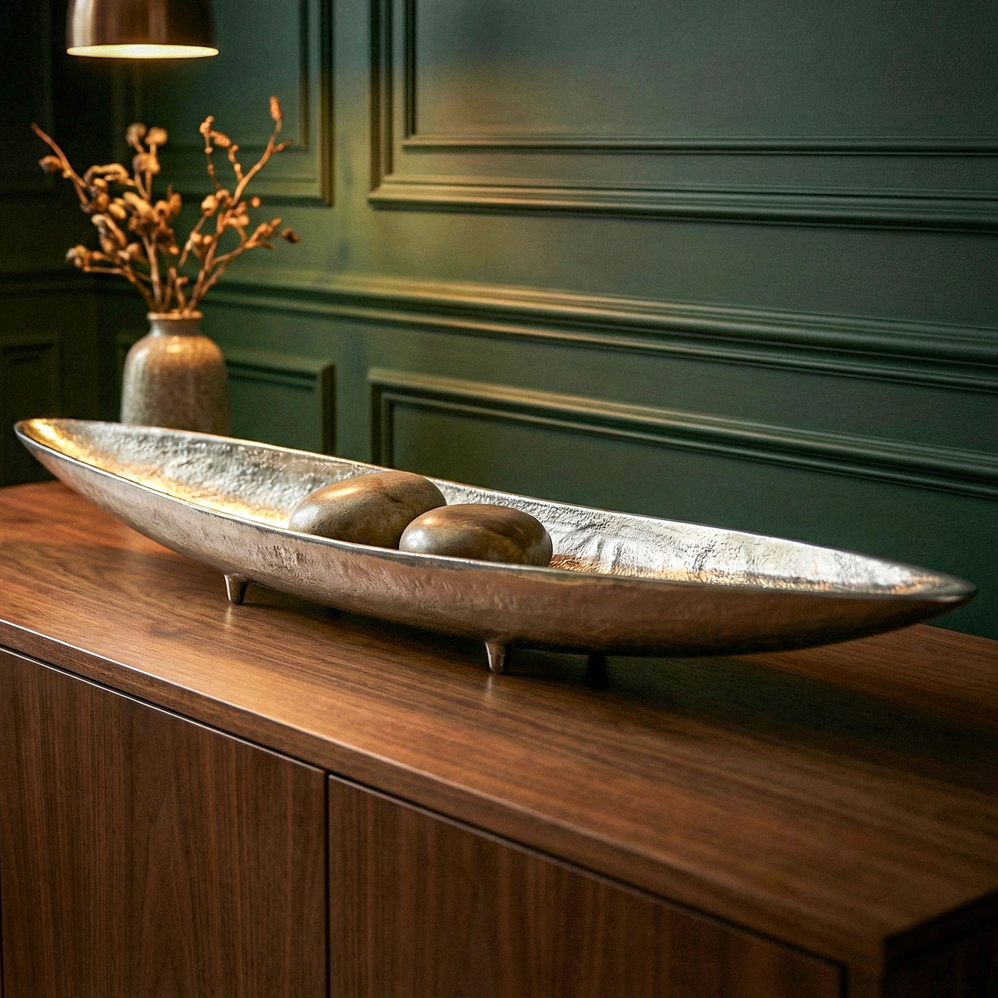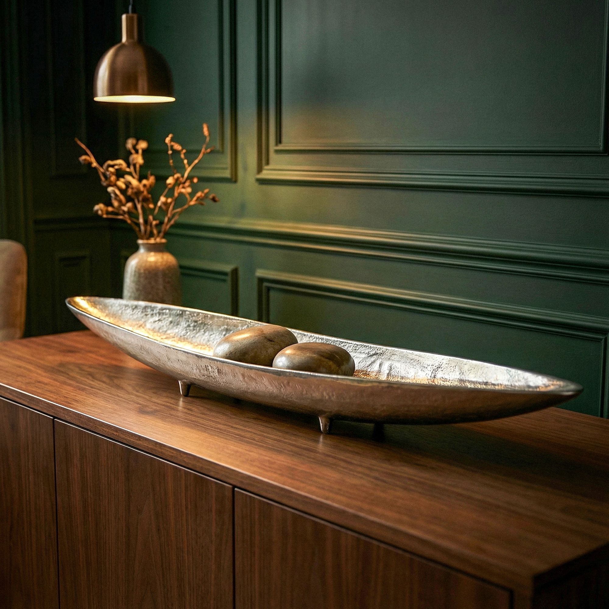 Dekoschale Silber Aluminium Schale 80 cm – Design Tischdeko Metall Wohnzimmer – Alu Wohnaccessoire Modern – Metallschale Dekoration – Aluschale lang schmal Handmade