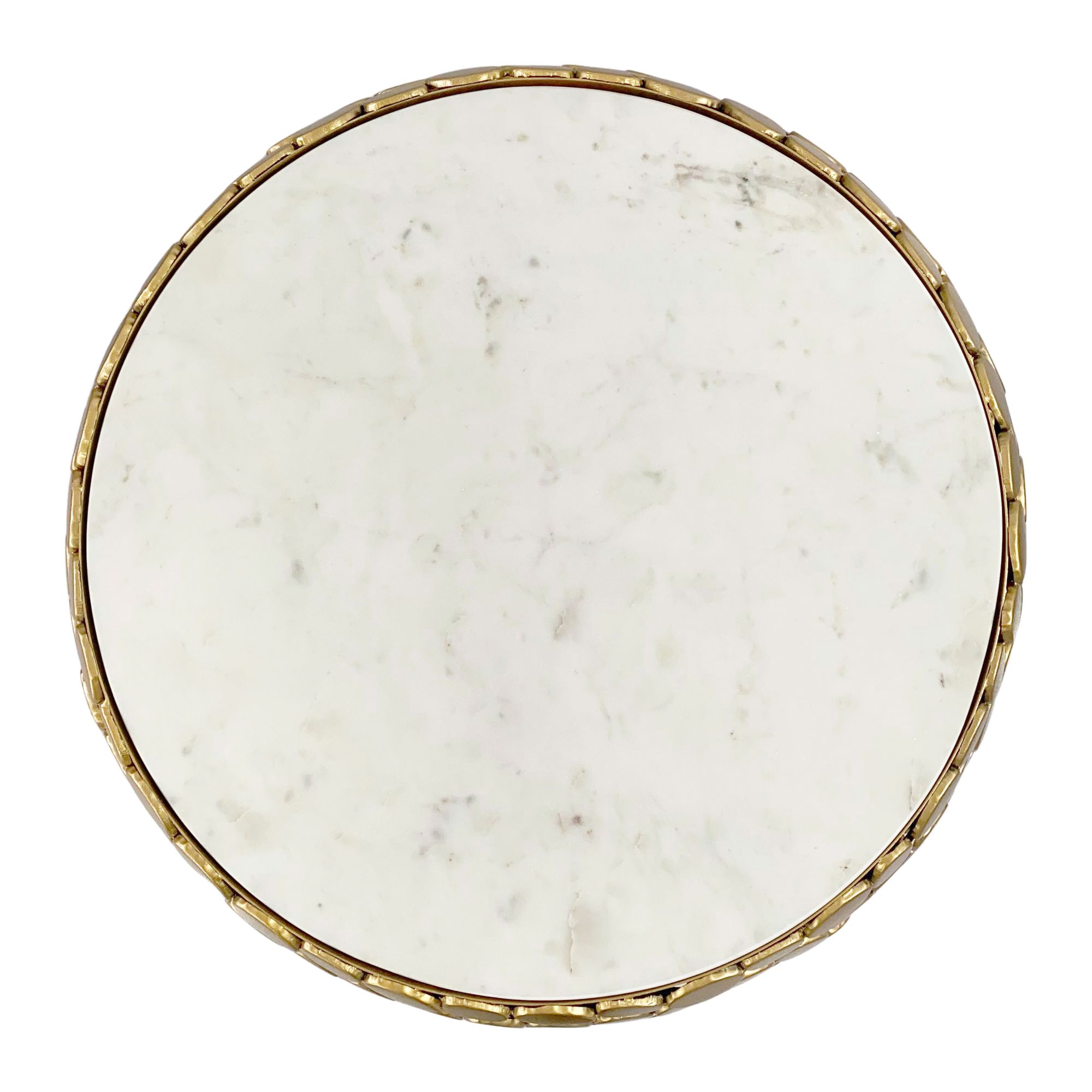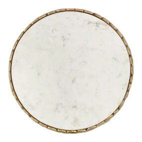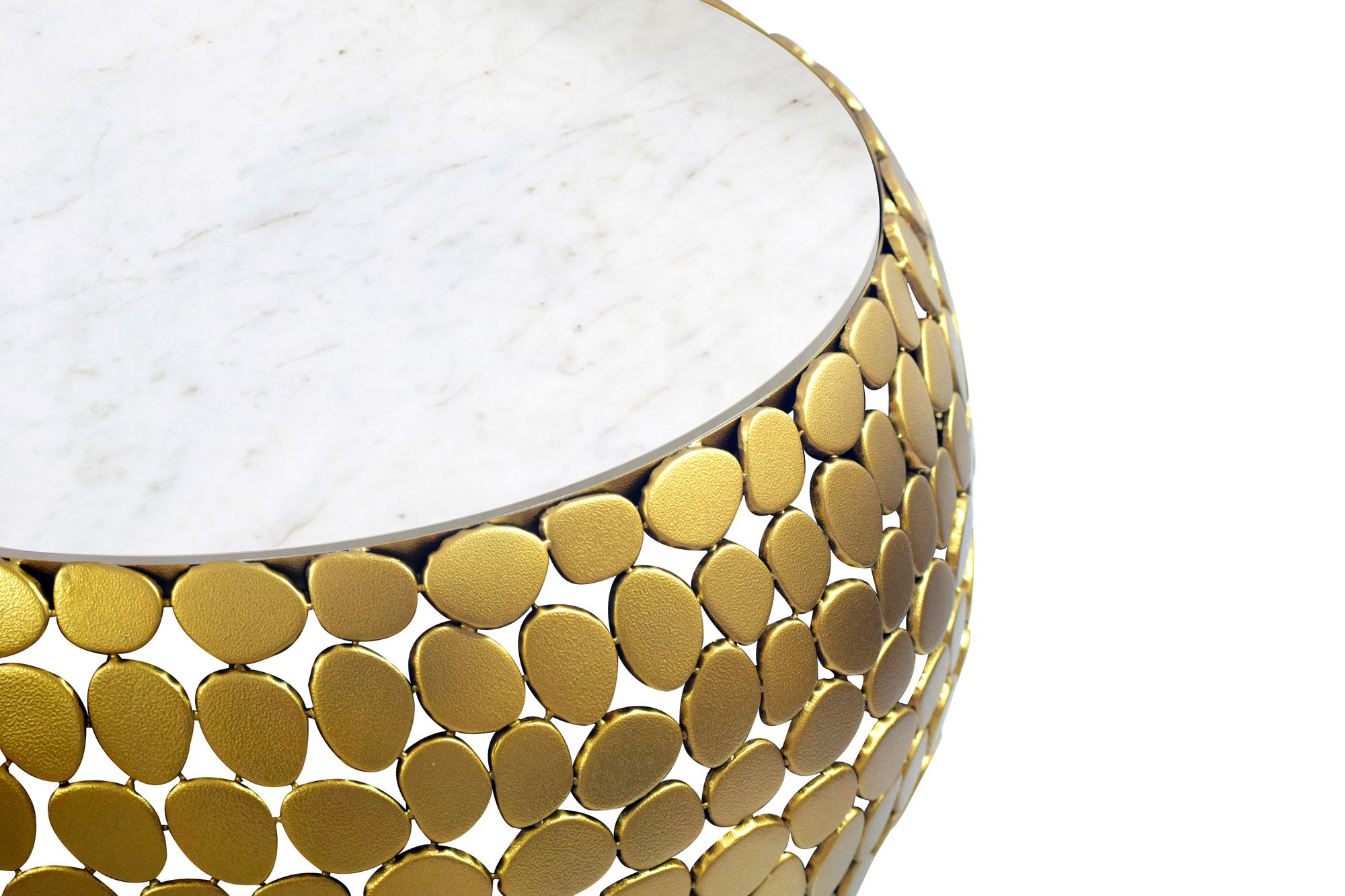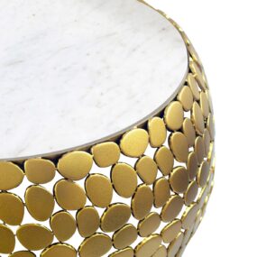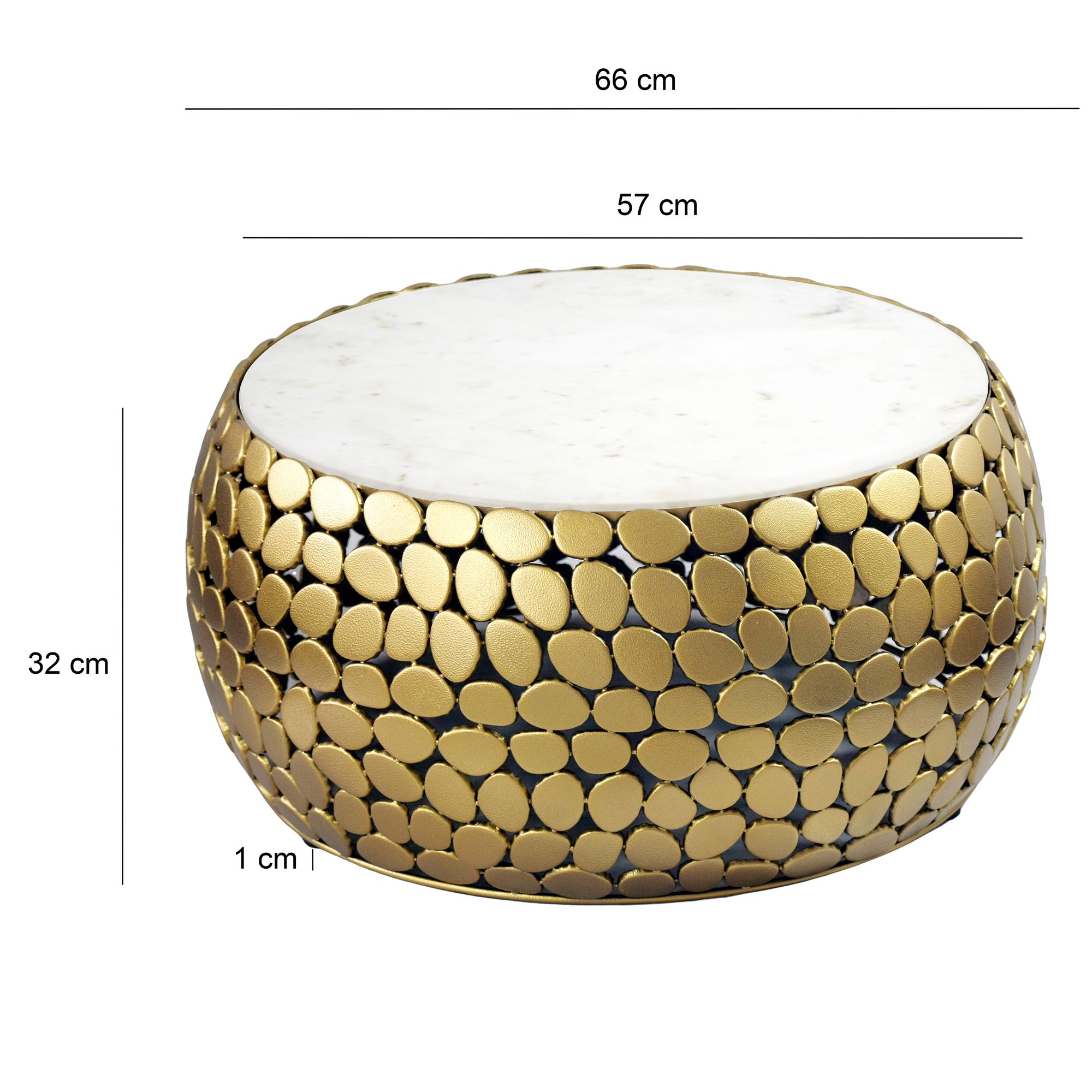 Design Couchtisch rund 66 cm aus Aluminium gold und weißer Marmor Tischplatte – Wohnzimmertisch Alu – Metall Sofatisch – Beistelltisch Wohnzimmer – Handmade