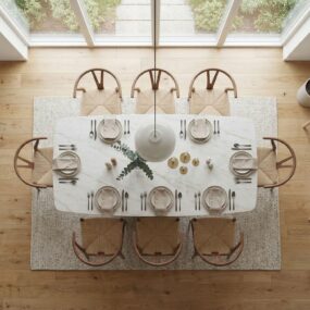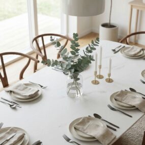 - Tischplatte: Sinterstein in Marmor-Optik auf MDF