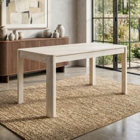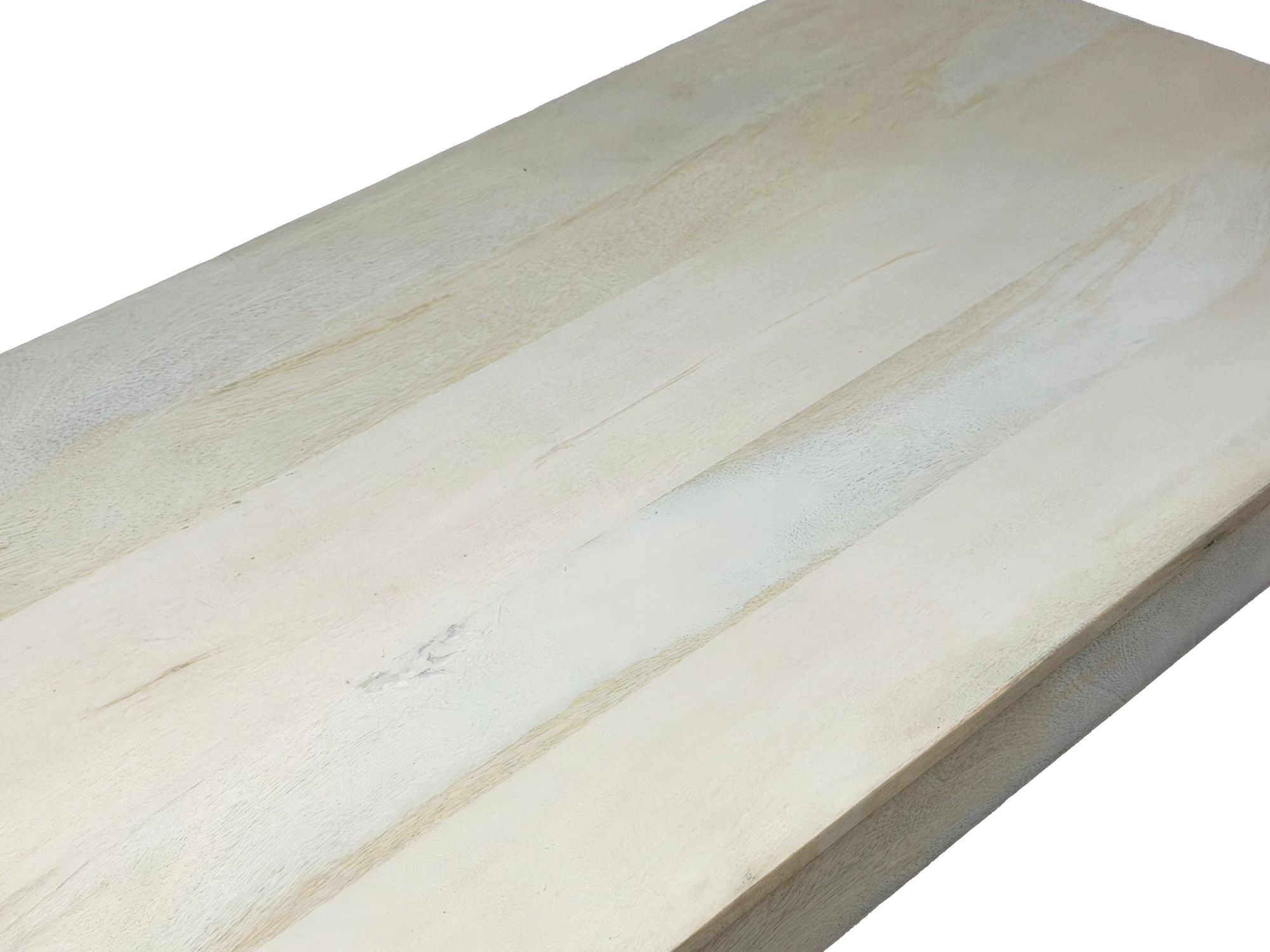 - Kompletter Tisch: Mango Massivholz, weiß getüncht & mit Klarlack beschichtet