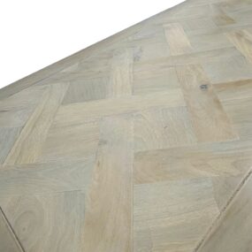 - Kompletter Tisch: Mango Massivholz, weiß getüncht & mit Klarlack beschichtet