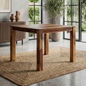 Esstisch Massivholz Sheesham 80×80 cm Dunkelbraun – Quadratischer Esszimmertisch Holz – Küchentisch modern für 4 Personen – Stabiler Holztisch – Tisch für Esszimmer Bistrotisch Handmade