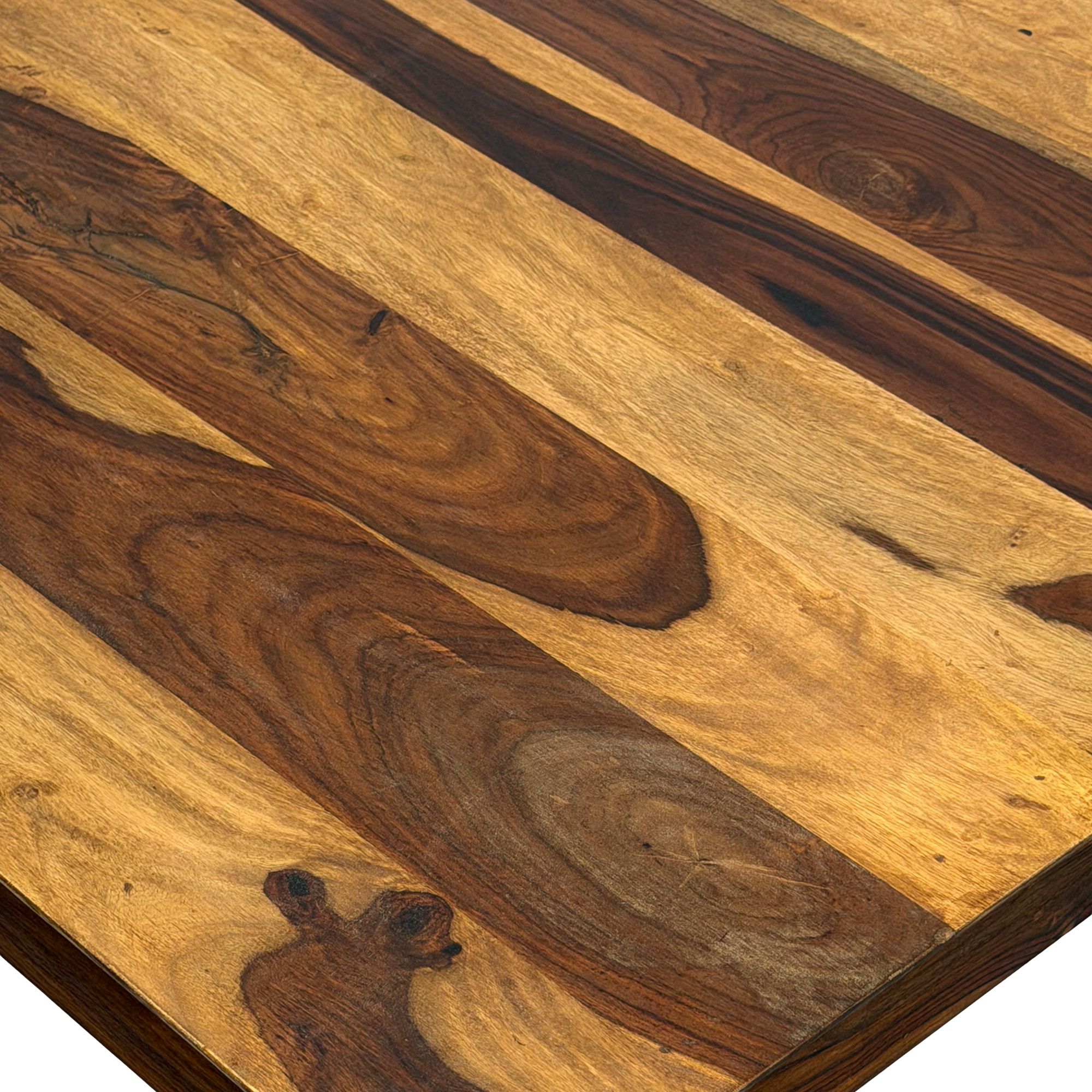 - Kompletter Tisch: Sheesham Massivholz, mit Klarlack beschichtet