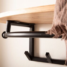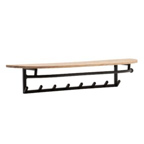 Garderobe aus Massivholz Akazie mit Rundkante 100 cm – Industrial Wandgarderobe mit Ablage & 8 Haken – Garderobenleiste mit Metallrahmen Schwarz Handgefertigt