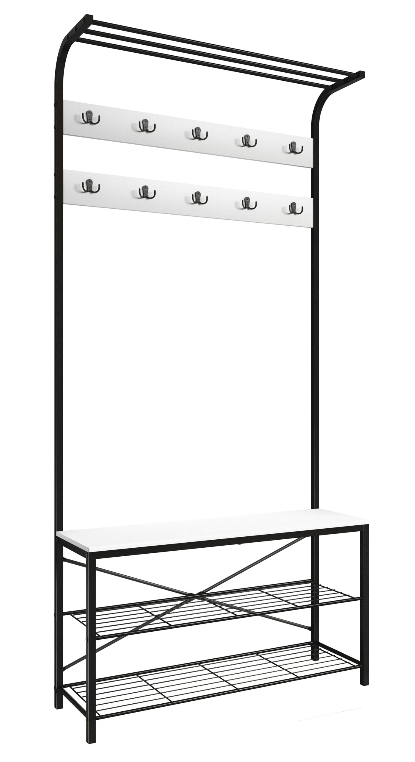 • Kleiderständer mit 10 Kleiderhaken und Hutablage