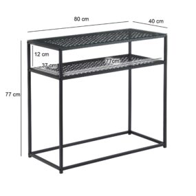 Konsolentisch Glas Metall 80x40x77 cm Flurtisch Schwarz Schmal, Ablagetisch Eingangsbereich mit Glasplatte & Metallgestell, Design Glastisch mit Ablage
