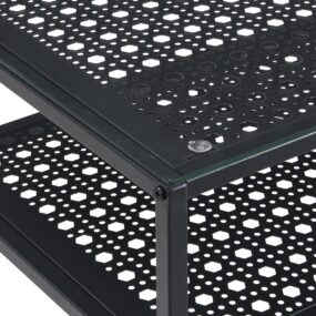 - Stilvolle Gitterstruktur unterhalb der Tischplatte und auf der Ablage als dekoratives Detail