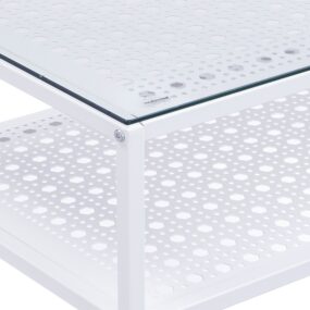 - Stilvolle Gitterstruktur unterhalb der Tischplatte und auf der Ablage als dekoratives Detail