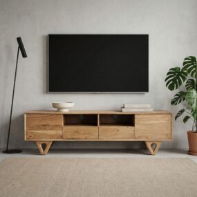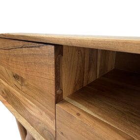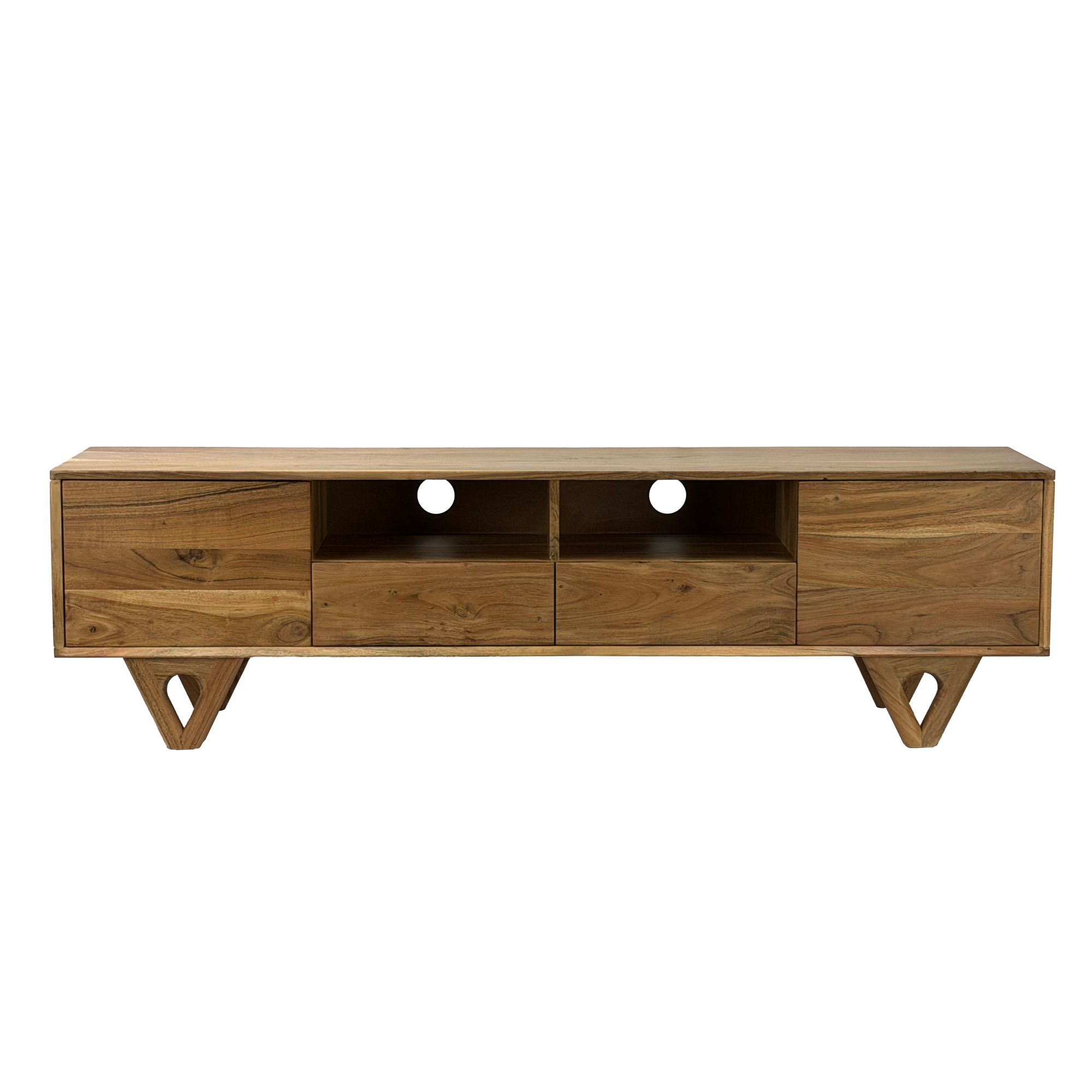 Lowboard Massivholz Akazie 160cm – TV Board mit Türen Schubladen und offenen Fächern – Fernsehunterschrank mit Kabeldurchlass – Fernsehkommode TV-Kommode modern