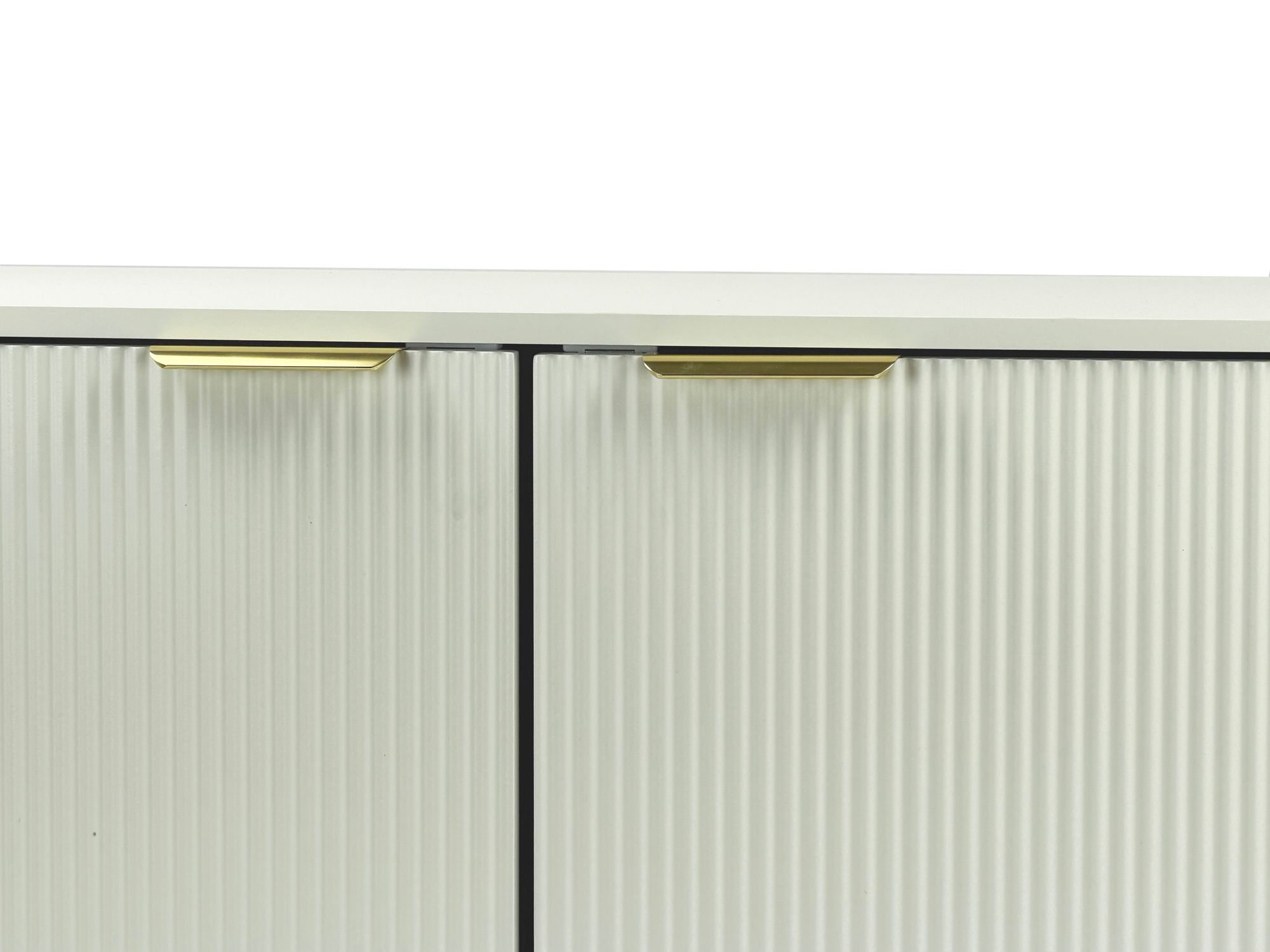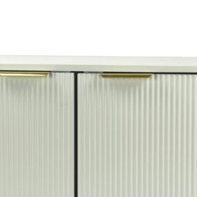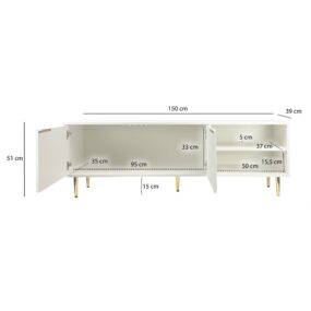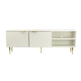 Lowboard TV Möbel Weiß 150cm – TV Board mit Lamellenfront – TV Kommode mit 2 Türen und offenen Fächern – Fernsehkommode Fernsehunterschrank mit Metallbeinen – TV Schrank Modern