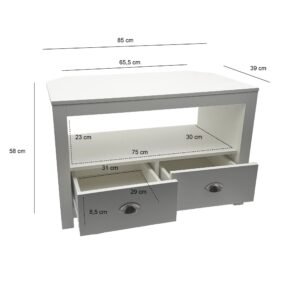 Lowboard TV Möbel Weiß 85cm – Kompaktes TV Board mit zwei Schubladen – Fernsehunterschrank mit offenem Fach – Platzsparende Fernsehkommode – Fernsehschrank TV Tisch für Raumecken