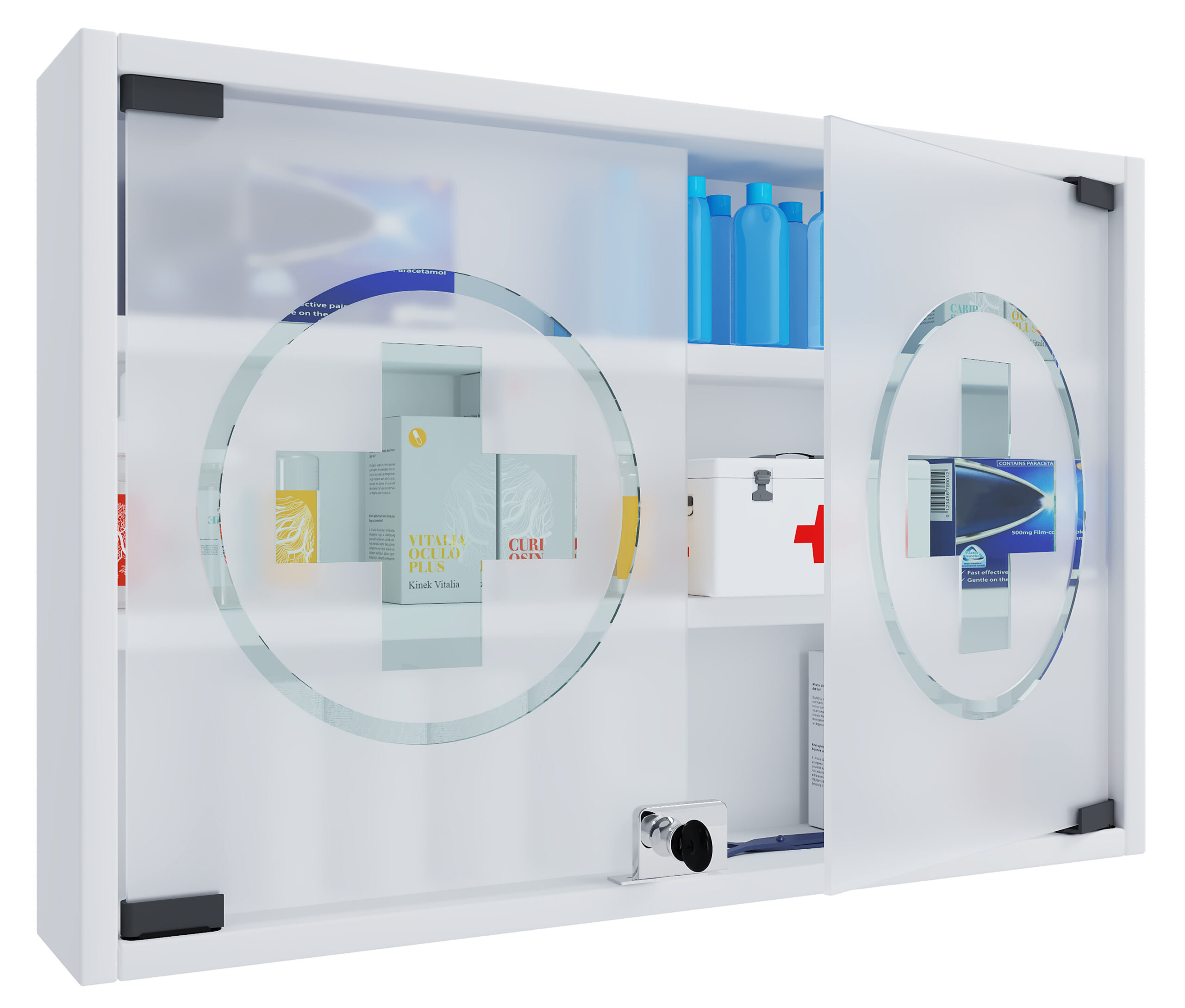 • 1 x Medizinschrank VCM Hustila M, inklusive Beschreibung (Montageanleitung)