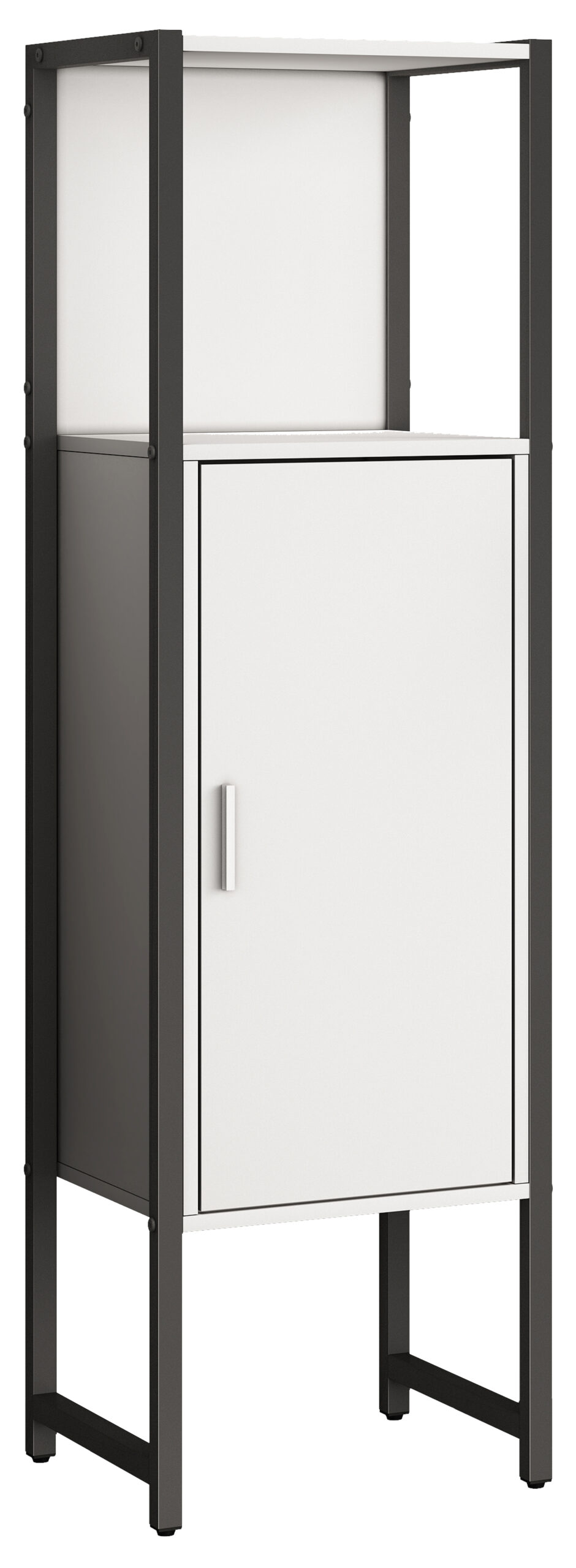 • Badmöbel aus Metall und Holz mit einer Drehtür