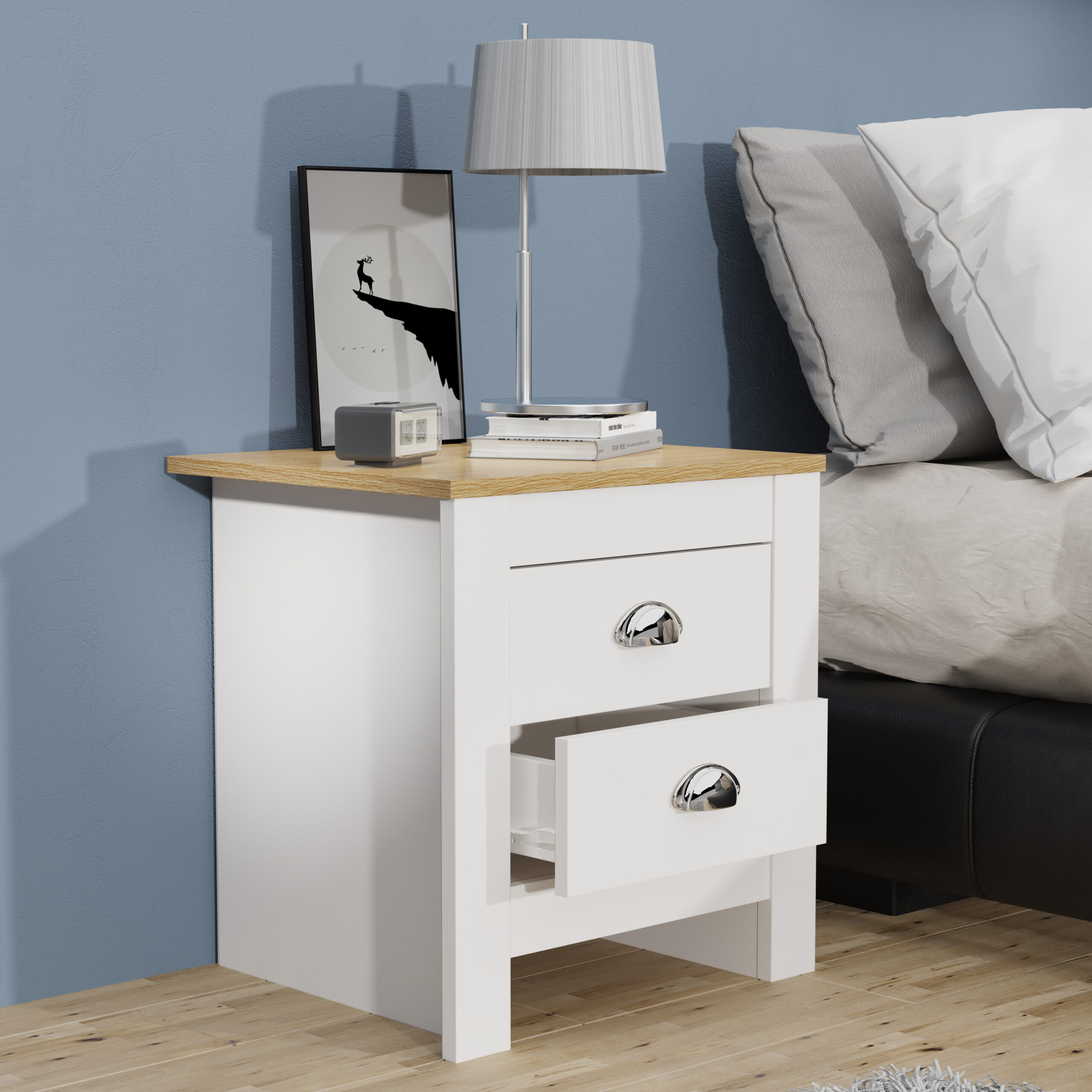 • Nachttisch mit leichtgängigen Schubladen im Retro Design