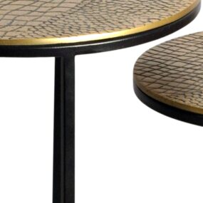 Satztisch Metall 2er Set rund gold – Beistelltisch Aluminium Tischplatten mit Muster – Design Couchtisch Anstelltisch modern Eisen Gestell – Dekotisch Wohnzimmertisch Handmade