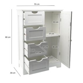 schmaler Badschrank 55×80 cm mit Wiener Geflecht – Badezimmerschrank mit Tür und 4 Schubladen – Badregal aus lackiertem MDF – Badezimmerregal modern – Aufbewahrungsschrank Bad Badezimmer
