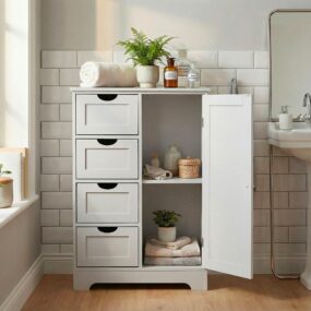 - Kompakte Maße – ideal als Stauraumlösung in kleineren Bädern oder Gäste-WCs