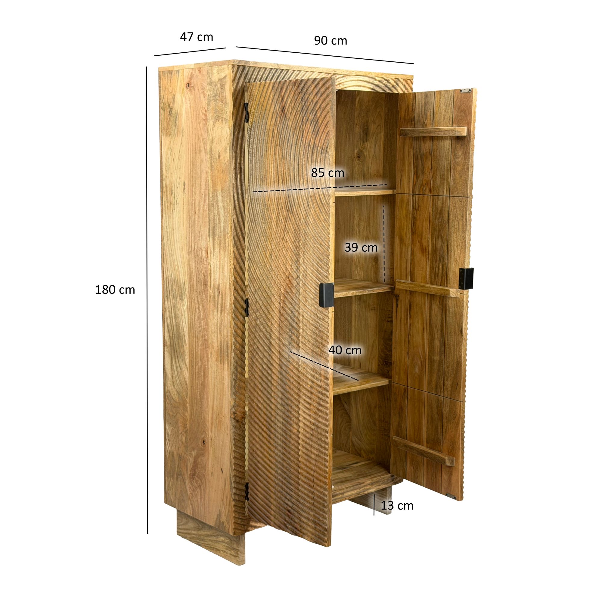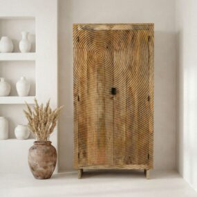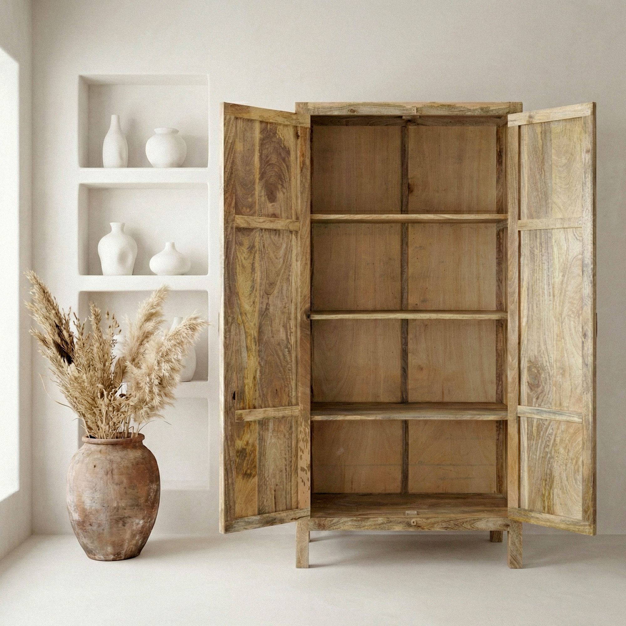 Schrank Mango Massivholz Natur 180cm – Wohnzimmerschrank hoch – Mehrzweckschrank Landhaus – Kleiderschrank mit 2 Türen – Design Massivholzschrank Handmade