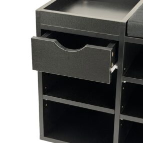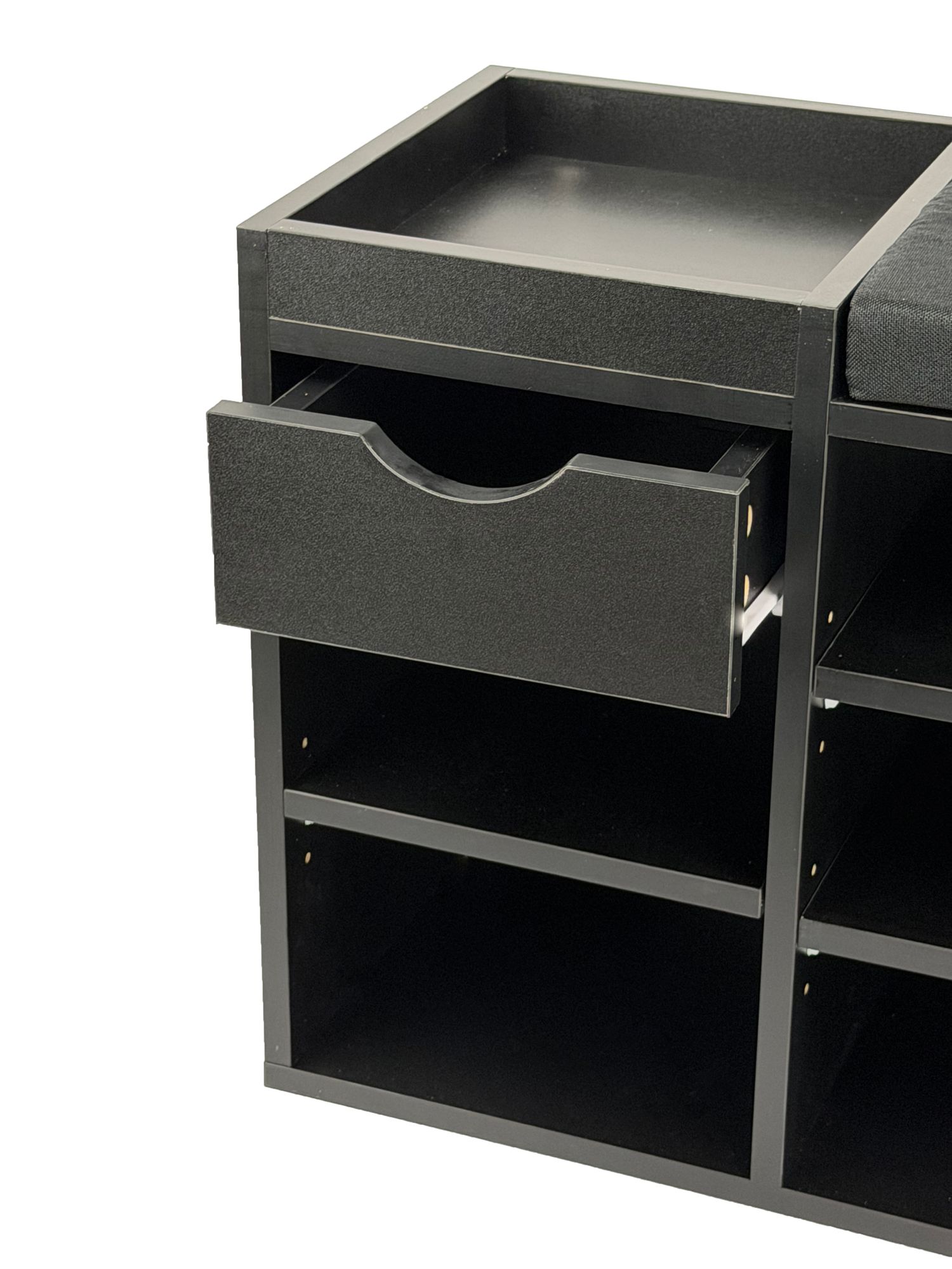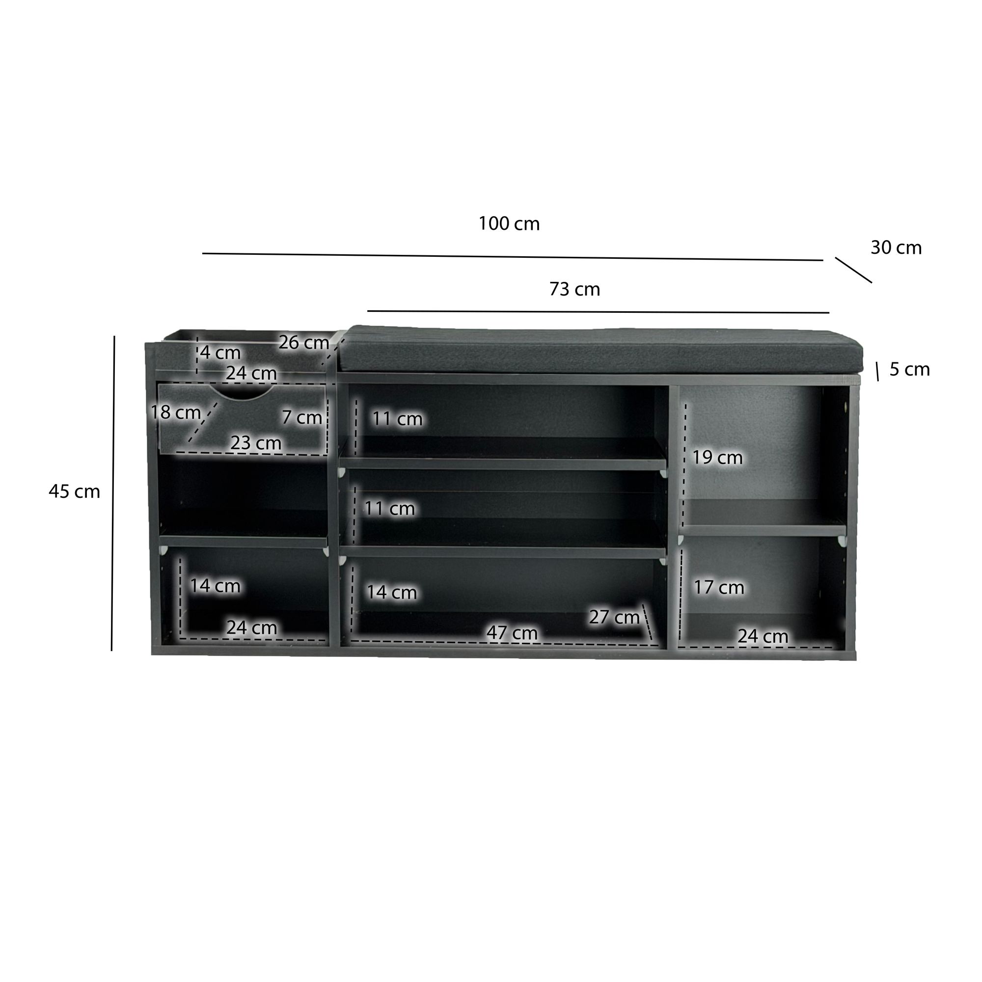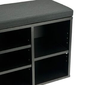 Schuhbank Flur Schwarz 100cm mit Sitzkissen – Sitzbank mit Schublade und verstellbaren Regalböden – Flurmöbel Schuhregal modern für den Eingangsbereich – Flurbank mit Stauraum
