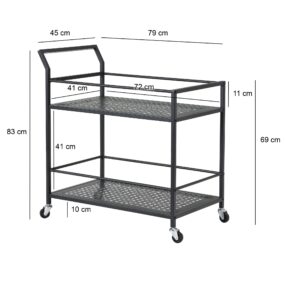 Servierwagen Metall Schwarz 79x45x83 cm mit Rollen & Bremsen, Küchenwagen 2 Ebenen, Barwagen & Rollwagen Multifunktional Modern, Beistellwagen für Küche, Esszimmer, Wohnzimmer