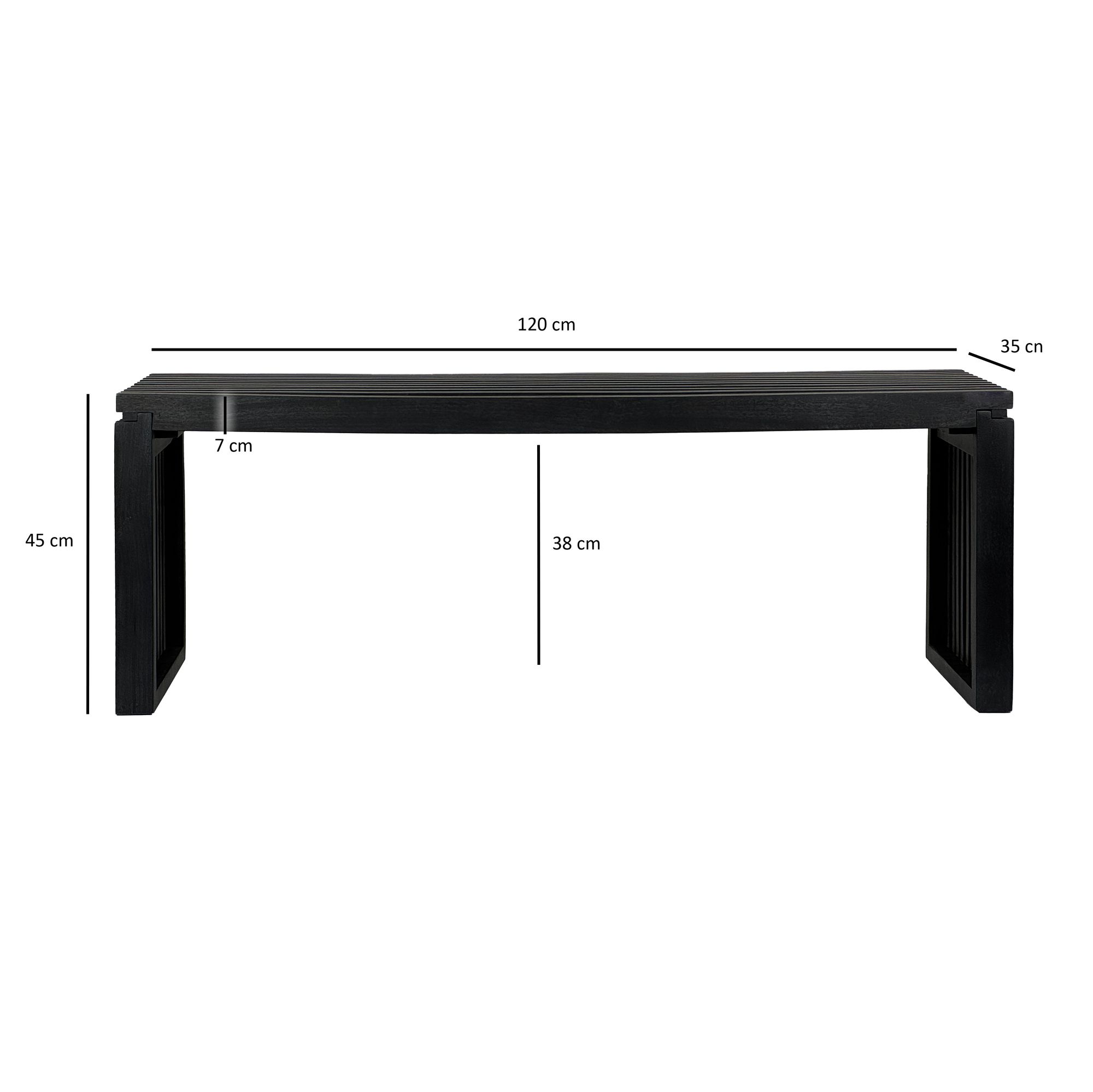 Sitzbank 120 cm aus Akazie Massivholz Schwarz, Garderobenbank & Bettbank modern, Flurbank Holz für Eingangsbereich Schlafzimmer Wohnzimmer