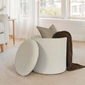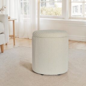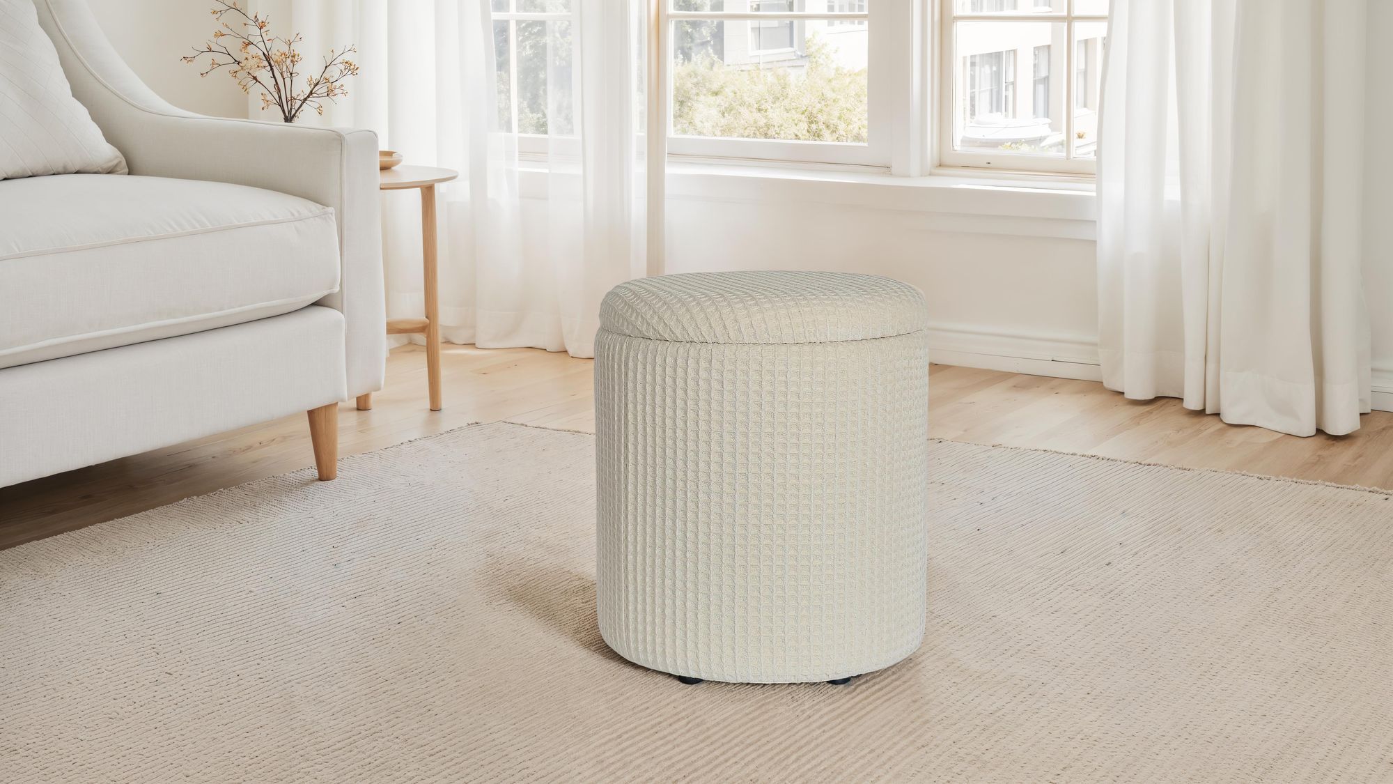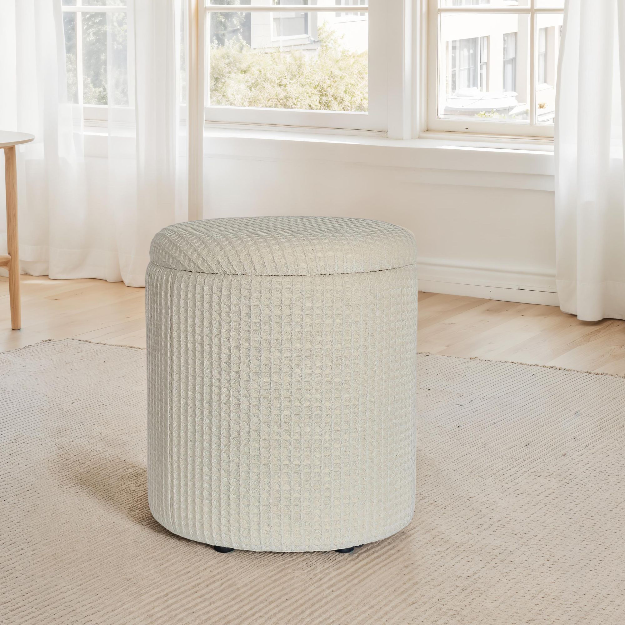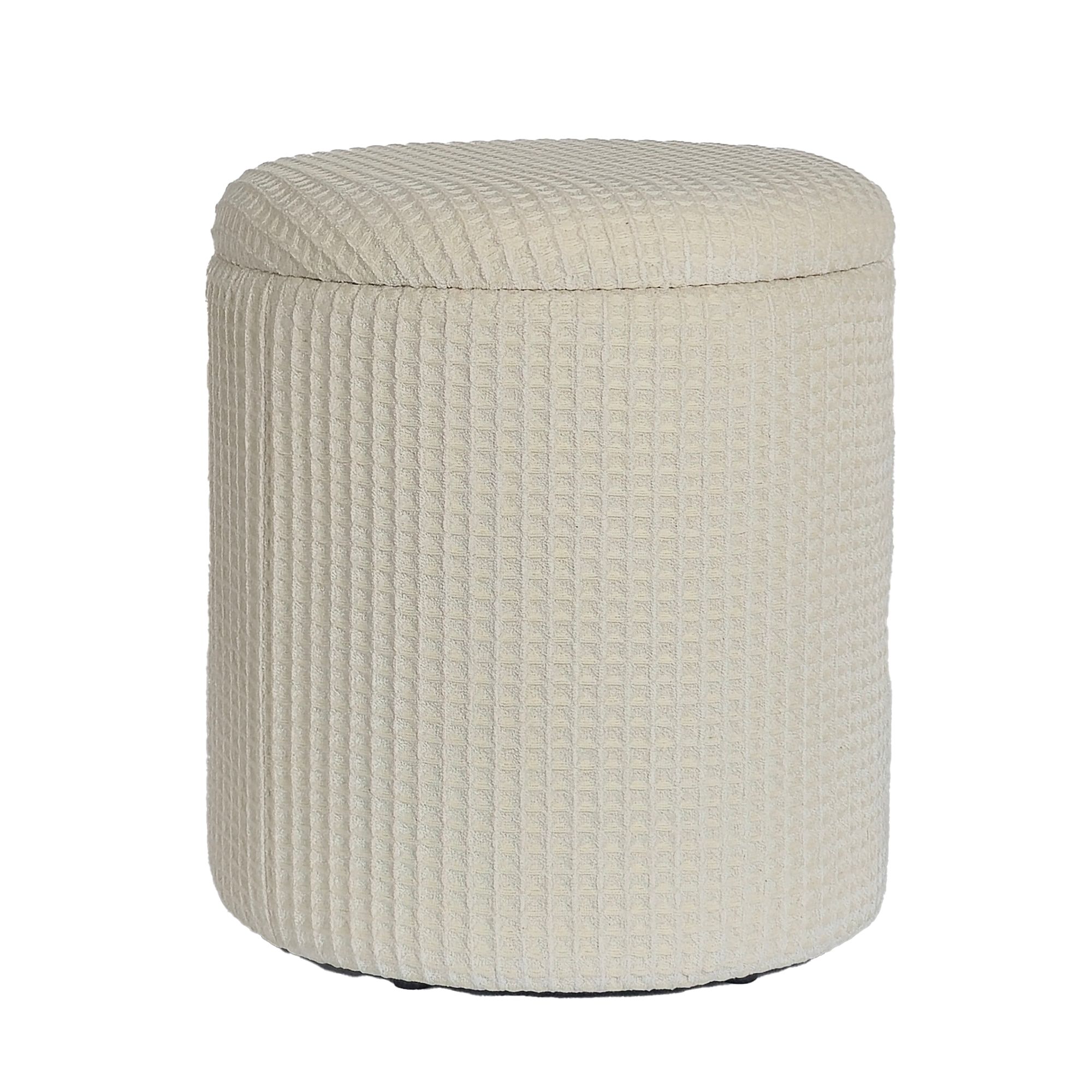 Sitzhocker mit Stauraum rund Ø40×45 cm Beige Baumwolle, Hocker mit abnehmbarem Deckel, Aufbewahrungshocker Stoff, Beistellhocker & Fußhocker für Wohnzimmer Schlafzimmer Flur