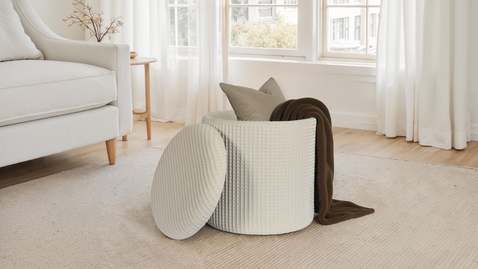 - Abnehmbarer Deckel mit geräumigem Staufach für Decken, Kissen, Bücher oder Spielsachen
