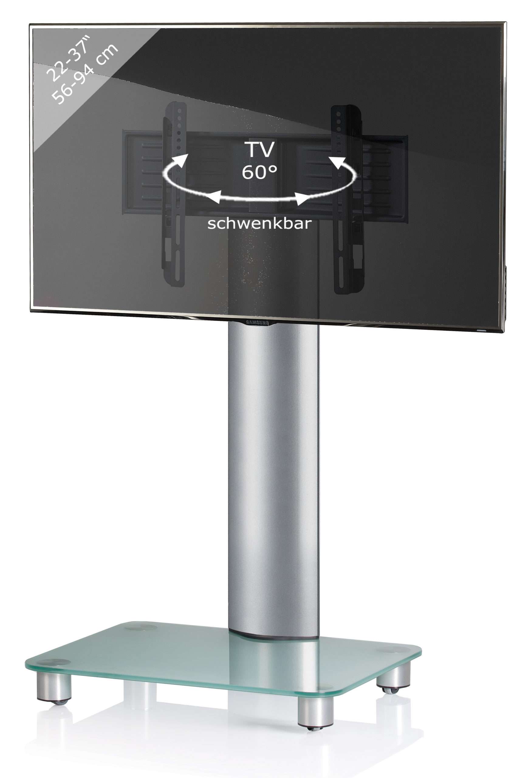 • Standfuß aus hochwertigem Aluminium / Glas
