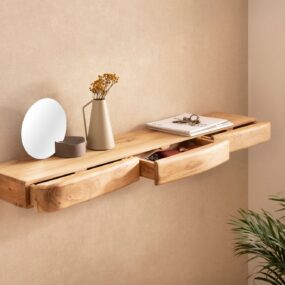 Wandregal Akazie Massivholz 120cm mit drei Schubladen – Design Regal für die Wand – Holz Wandboard mit Stauraum – Schwebendes Hängeregal aus Echtholz