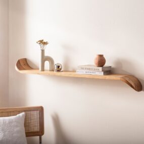 - Wandregal aus Mango Massivholz mit geschwungenen Enden