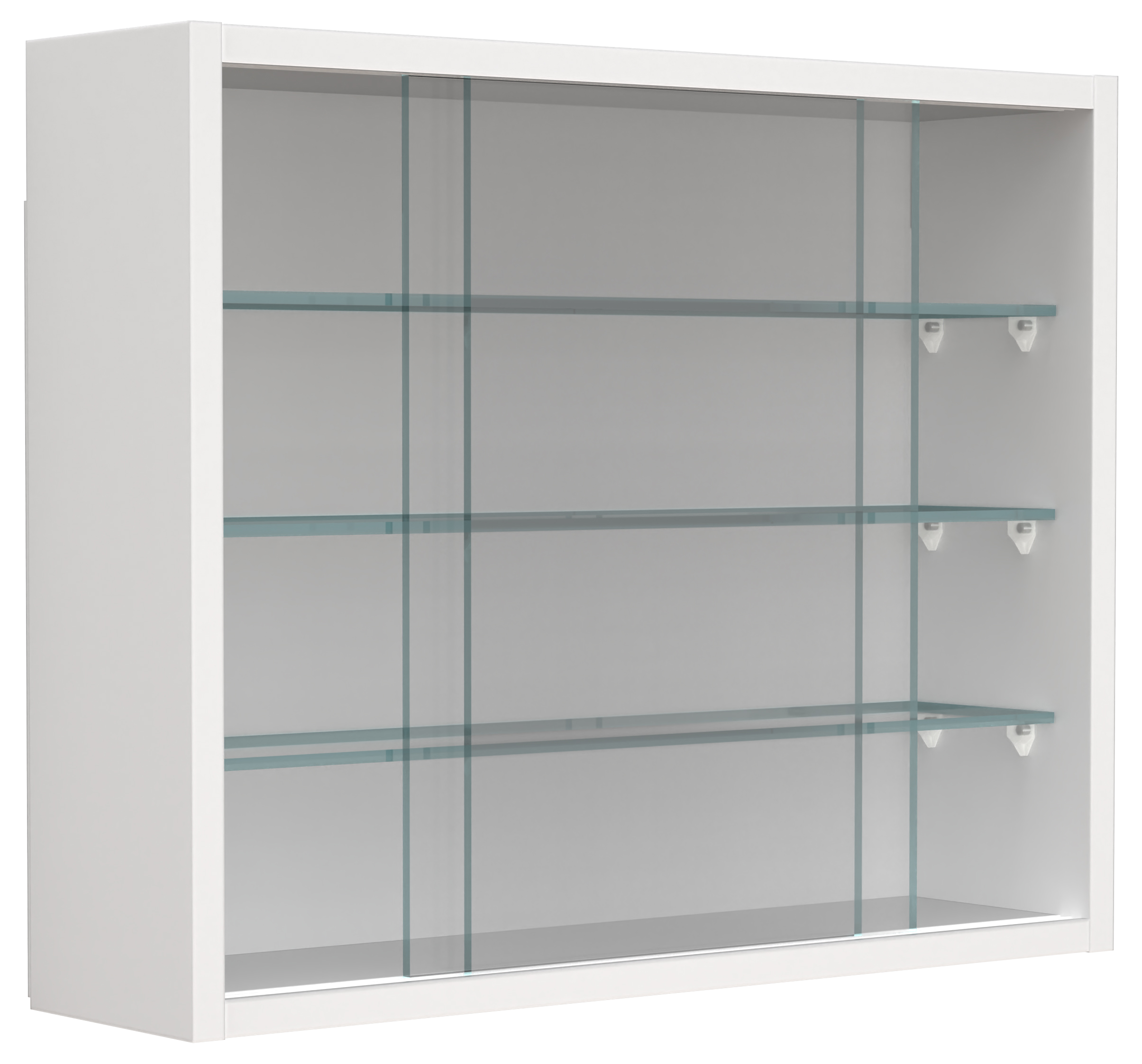 • Hängevitrine mit drei Fachböden sorgt für Ordnung